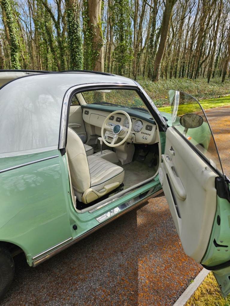 Finished in a lovely pastel green with a cream convertible roof and interior, it perfectly captures the unique vintage style the Figaro is known for.