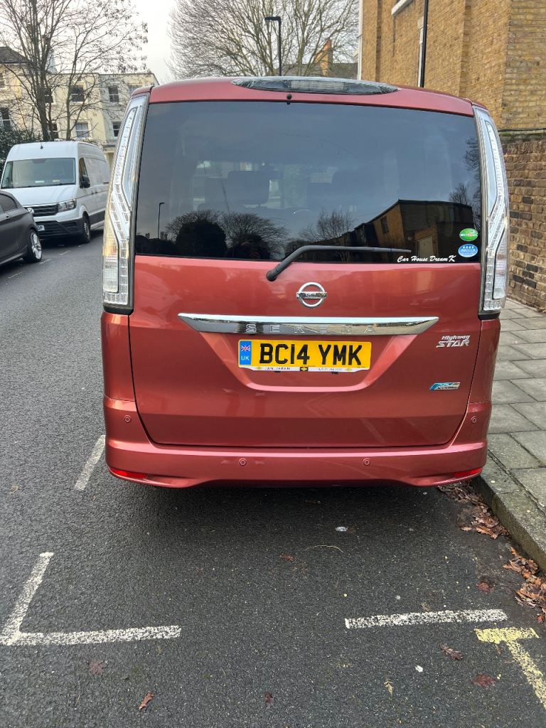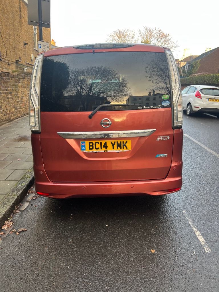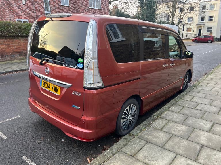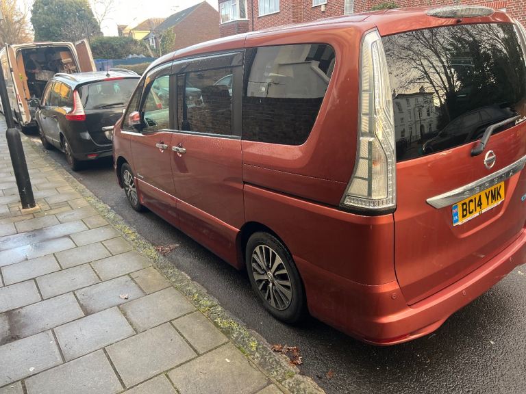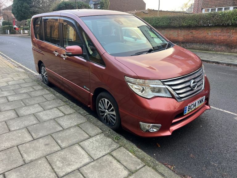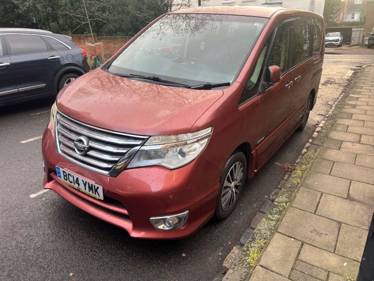 Nissan Serena S Hybrid . Automatic Transmission. 2014 year. Uk Registration in November 2025. Fully Serviced. Comes with new Batteries. 4 new Tyres. 15 inches Alloy wheels. Stop and Start Eco System Engine. Low insurance. 2 remote real Sliding electric doors. Key Less Entry. Tinted windows. Captan seat. Tv . DVD. Bluetooth. Cruise control. Automatic Brake Control system. Japanese cars more given comfort driving efficiency and reliability when you drive. Good and clean out and inside. Look like new . Welcome for test drive with Full Uk Driving Licence. Car in Sw99pd area. Contact me for more information. Thanks
