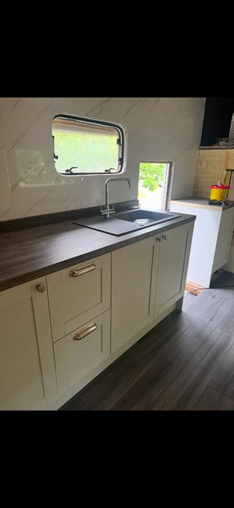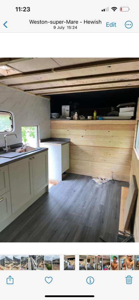 This is a Iveco - Ford originally a horse box. It’s been fully insulated. New flooring from howdons , all plumbing needs doing , the shower room extended with quality bathroom tiles like you would have in your home. 700x700 shower tray. Plumbing in for the shower also shower is supplied with a proper toilet with a sink on top for space saving but it’s a toilet you would have in you home.