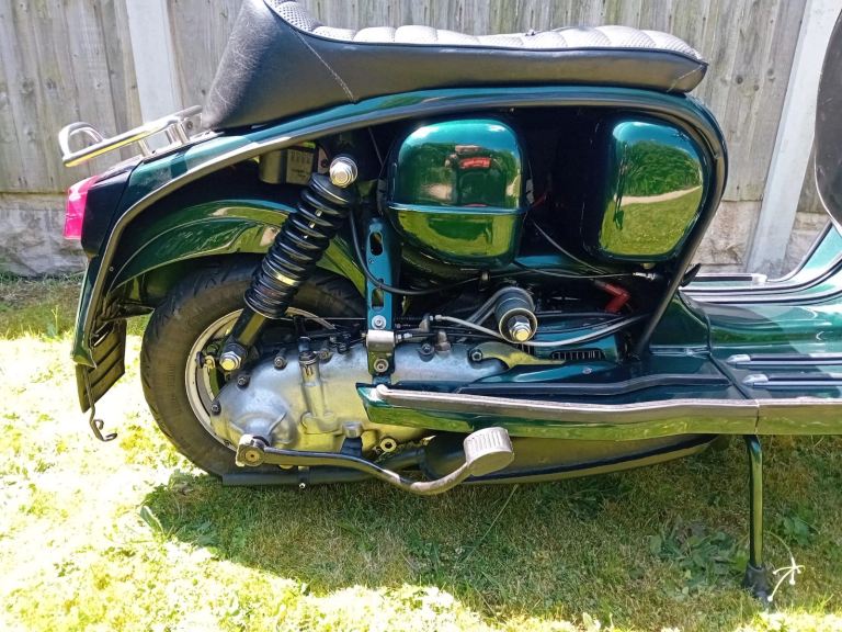 All parts have been progressively changed and updated over the last 20 years with nothing left to chance. Parts bought have all been top quality from sources such as MB, Cambridge Lambretta etc and it was recently checked (casings opened) and updated by Harry Barlow. All level 3 repairs have been carried out by reputable Lambretta Engineers and NOT in my garage with my mates even though I am mechanically minded. It's a 50 year old scooter by date only.