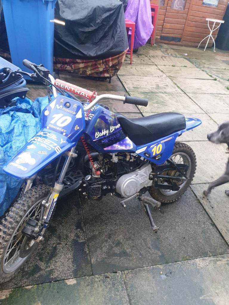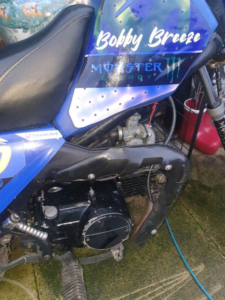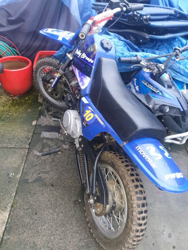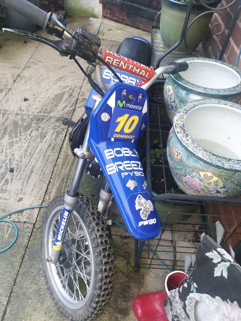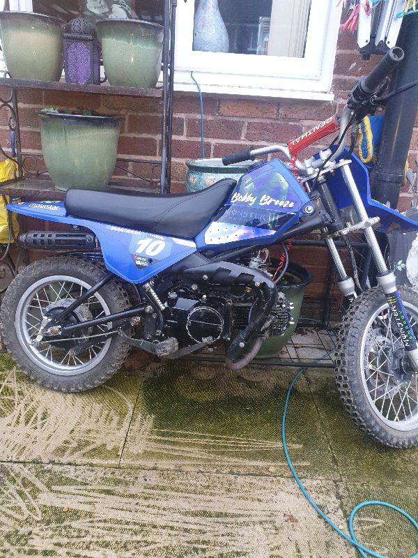 Py 90 cc semi auto 4 stroke childs motorbike. In very good condition. Starts 1st kick safety cut off incase fall off. Ideal christmas present . Price OVNO