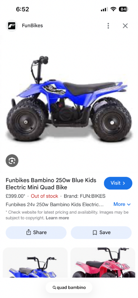 Posting for 4+ yearsquad bambino 24 volt 8mph, new battery’s fitted