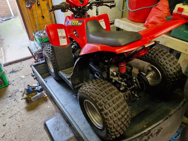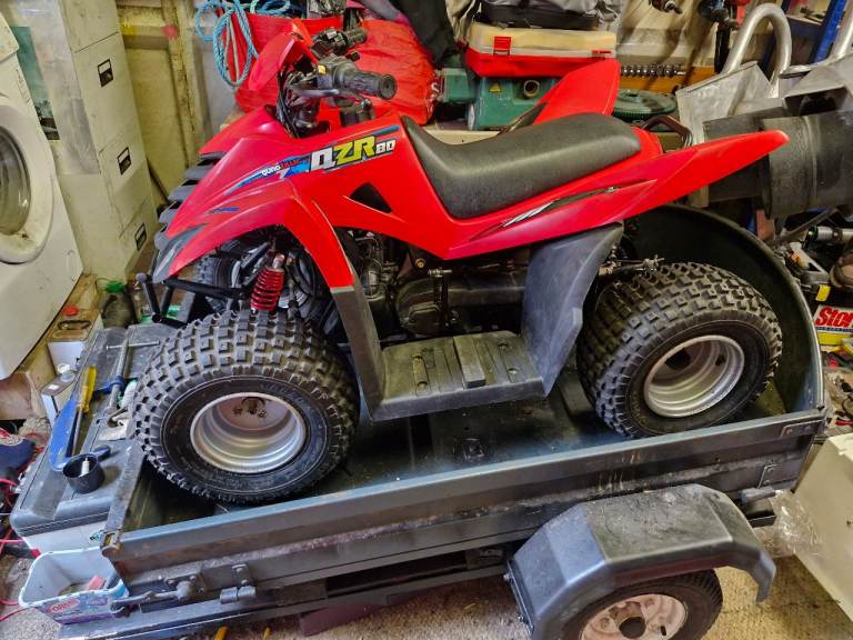 Lovely emaculate quadzilla qzr 80cc only been up and down street couple of times since new never been in the mud or field in its life unwanted christmas presant to my little girl comes with trailer and alloy ramps and spare wheel for trailer make me an offer its like new its a real bit of kit with purpose built trailer for any info message me