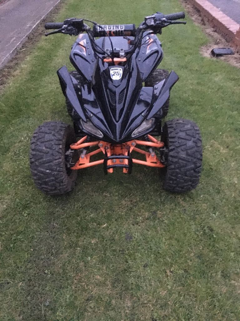 Raging bull 110 quad everything works lights brakes electric start has 2 gears forward + reverse comes with 2 keys