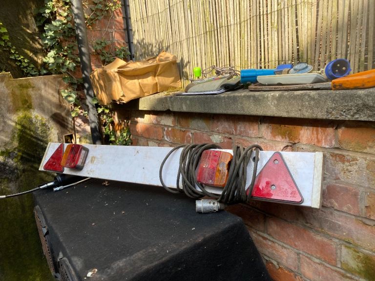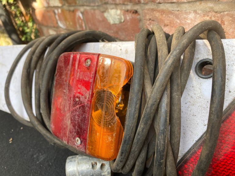 Trailer board, 7 pin plug long lead used, one light with lens damage £20