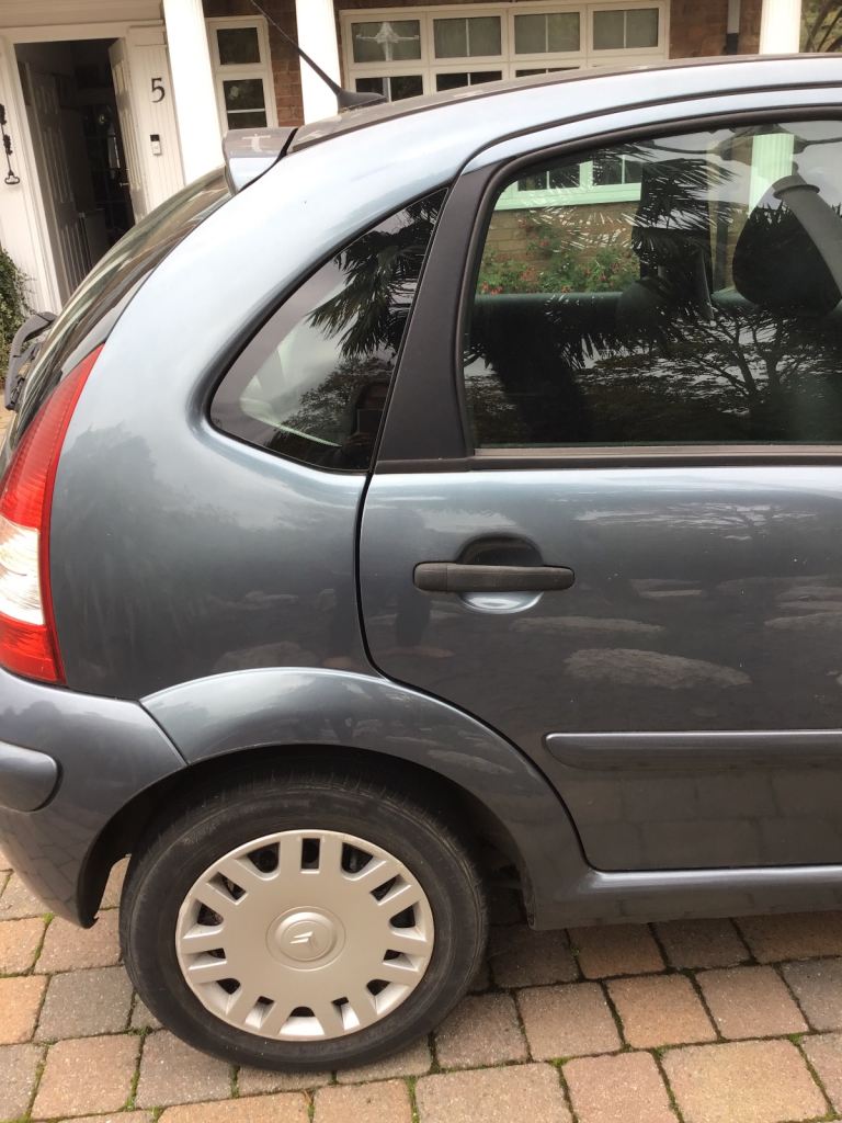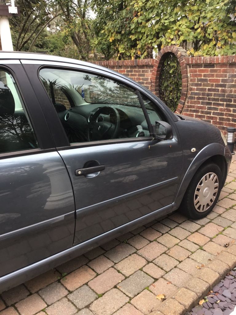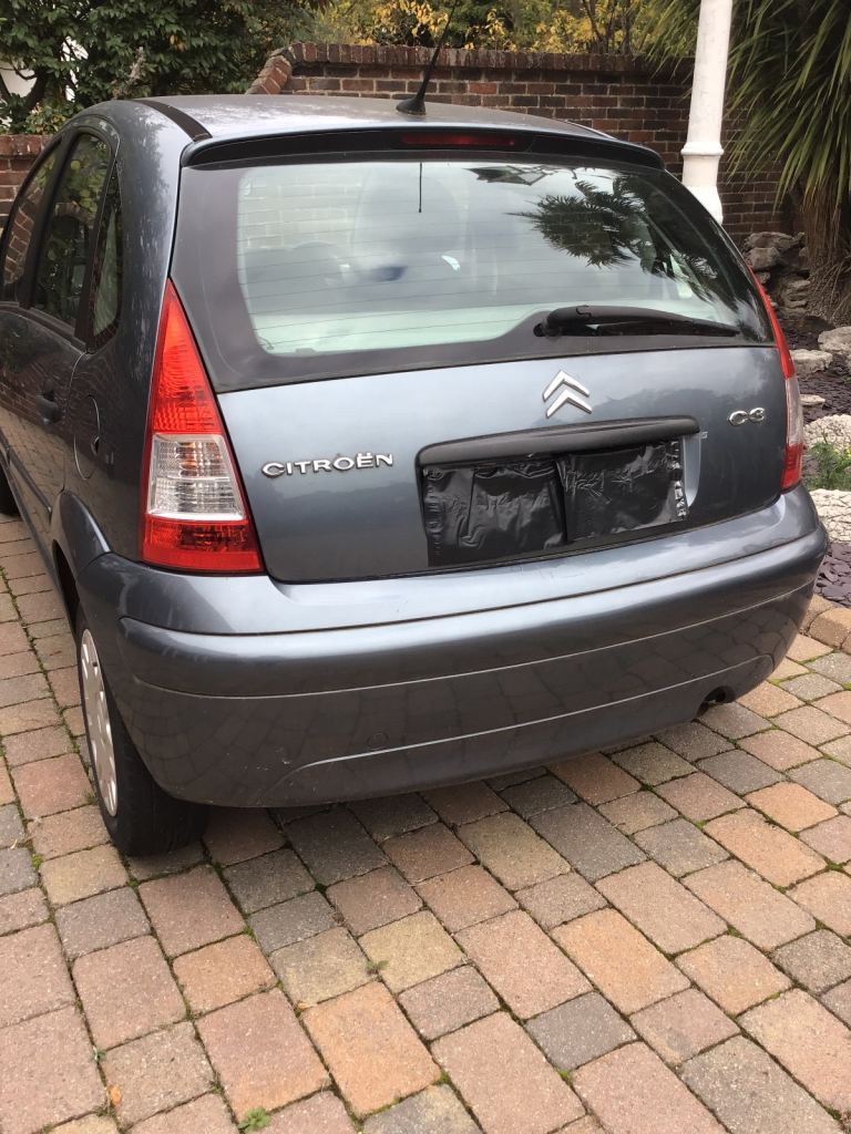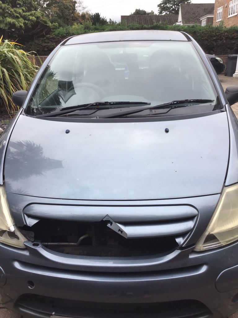 A grey Citroen C3 Desire, 07 plate, privately owned with full dealership service history. Mileage 80,000. Has sustained front end damage as a result of collision with a tow bar! Needs new grill and headlamps. Was a great reliable runner but MOT has now elapsed.