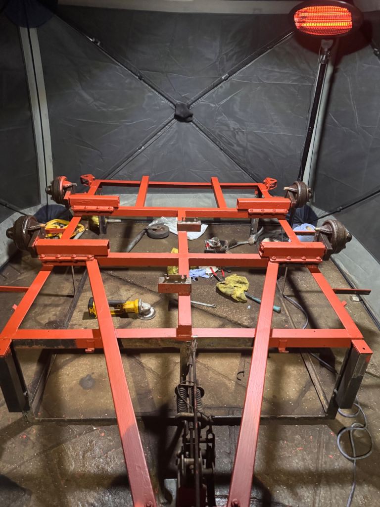 1.5/2 ton trailer fully refurbished the cream wheel picture show what it was like when I got it the rest shows what’s been done to it .