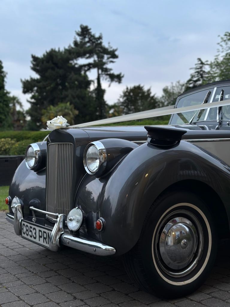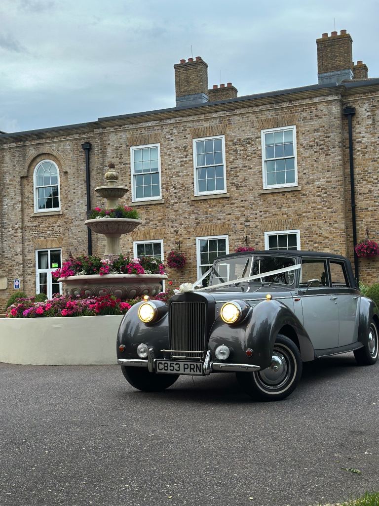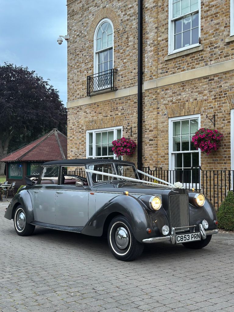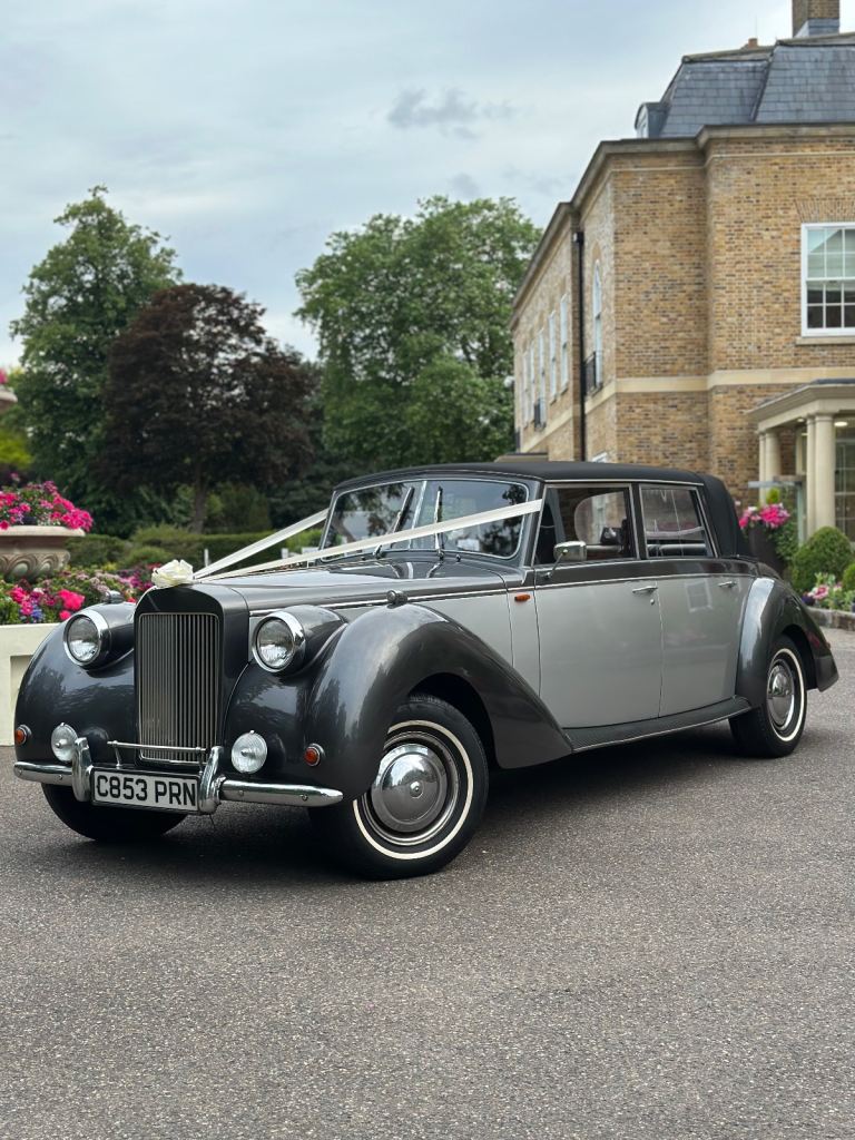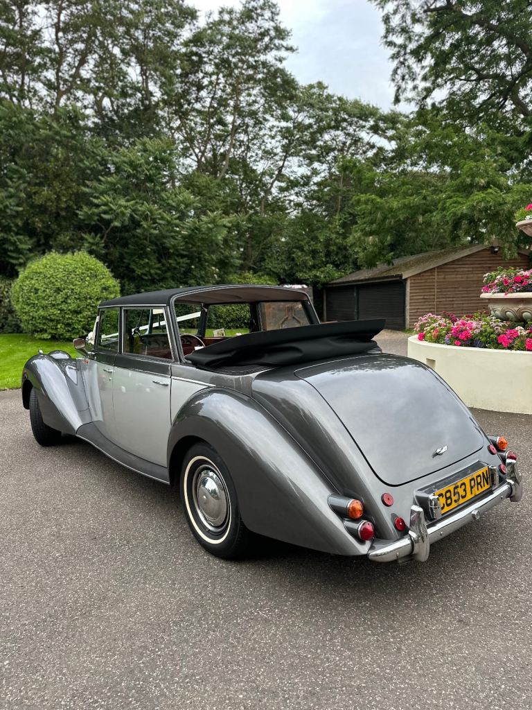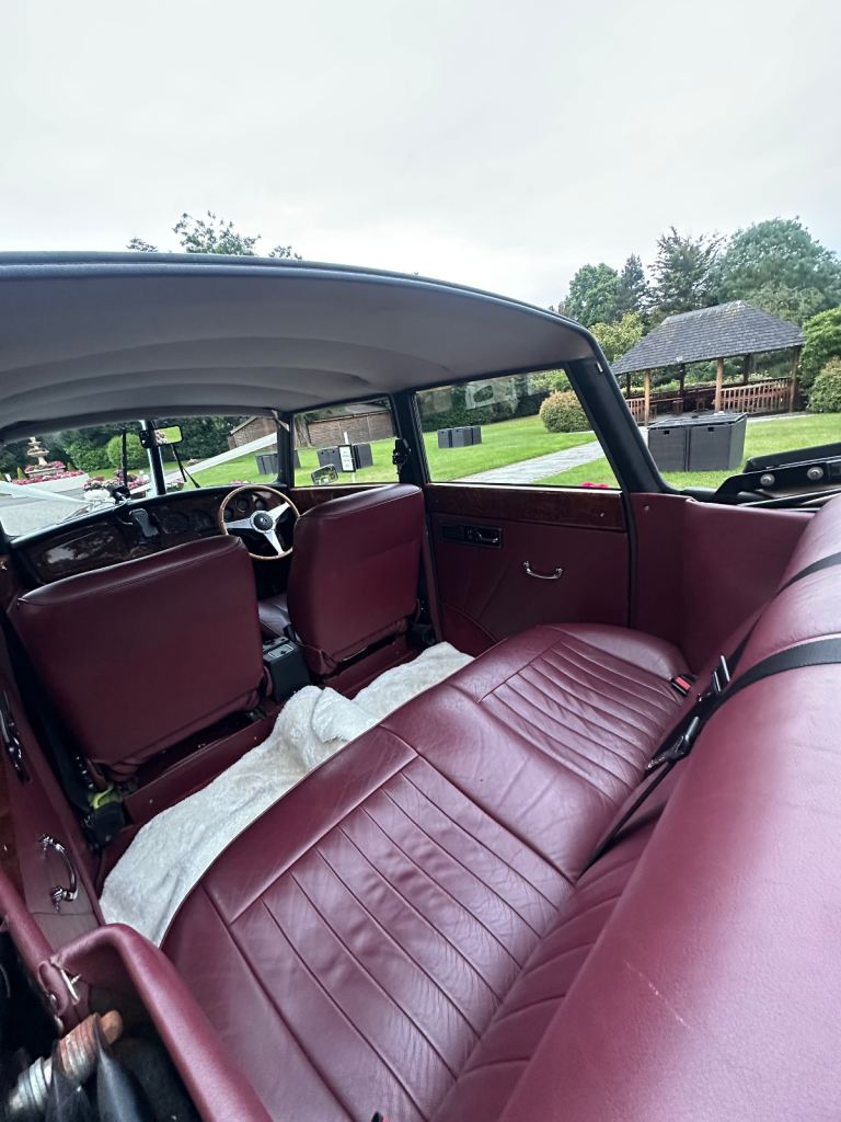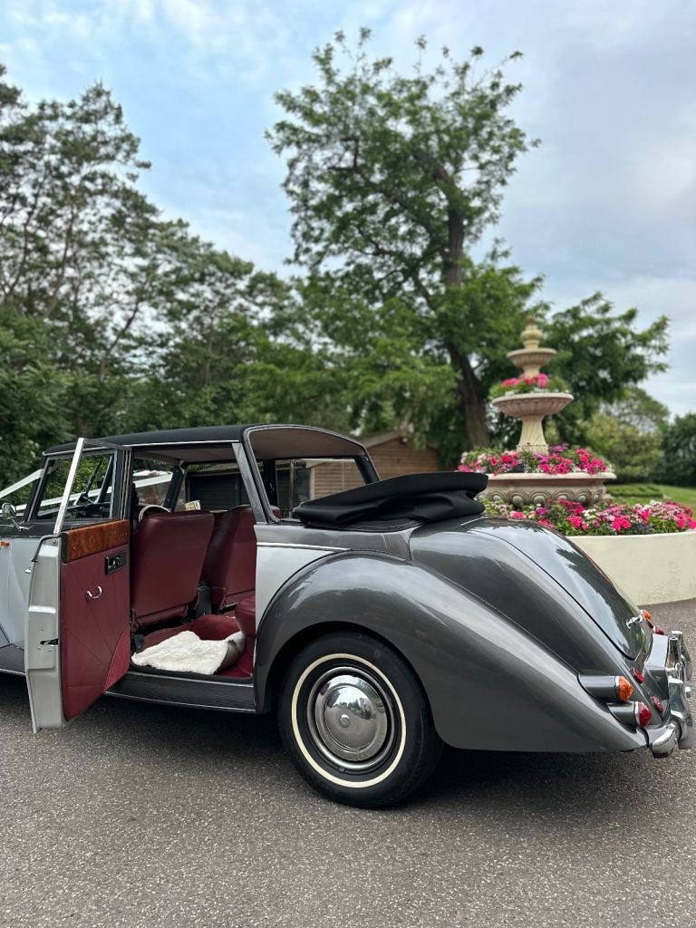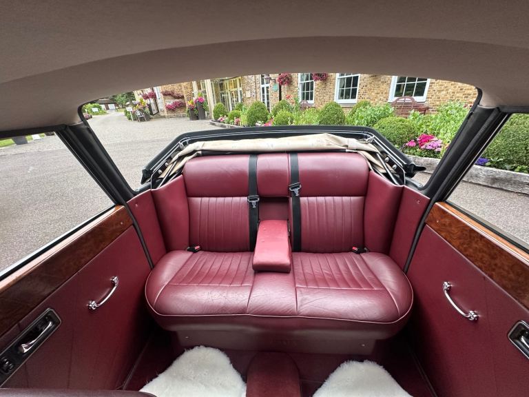 two-tone Silver coachwork with Burgundy leather seats and polished Burr Walnut panelling.