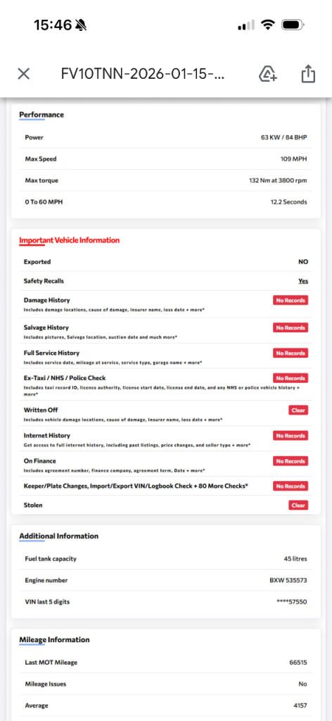 First to see will buy. Comes with MOT and logbook is on its way but this can be done online. Genuine mileage.