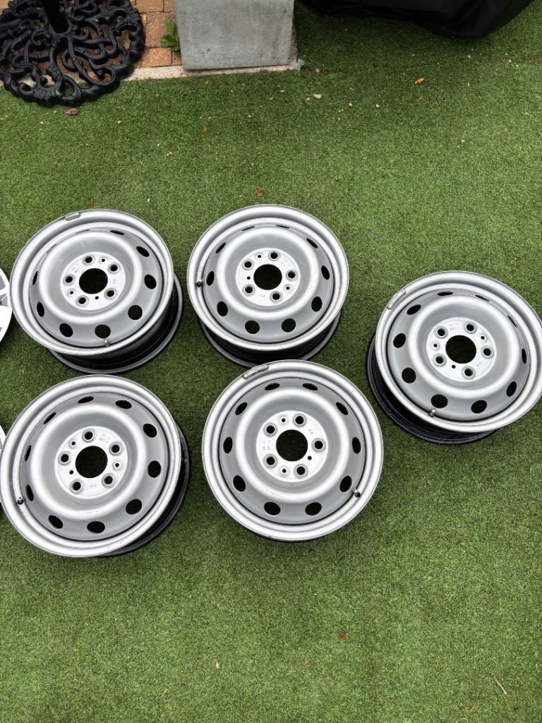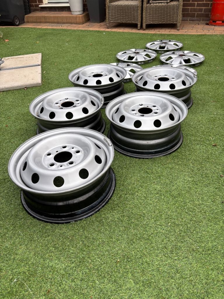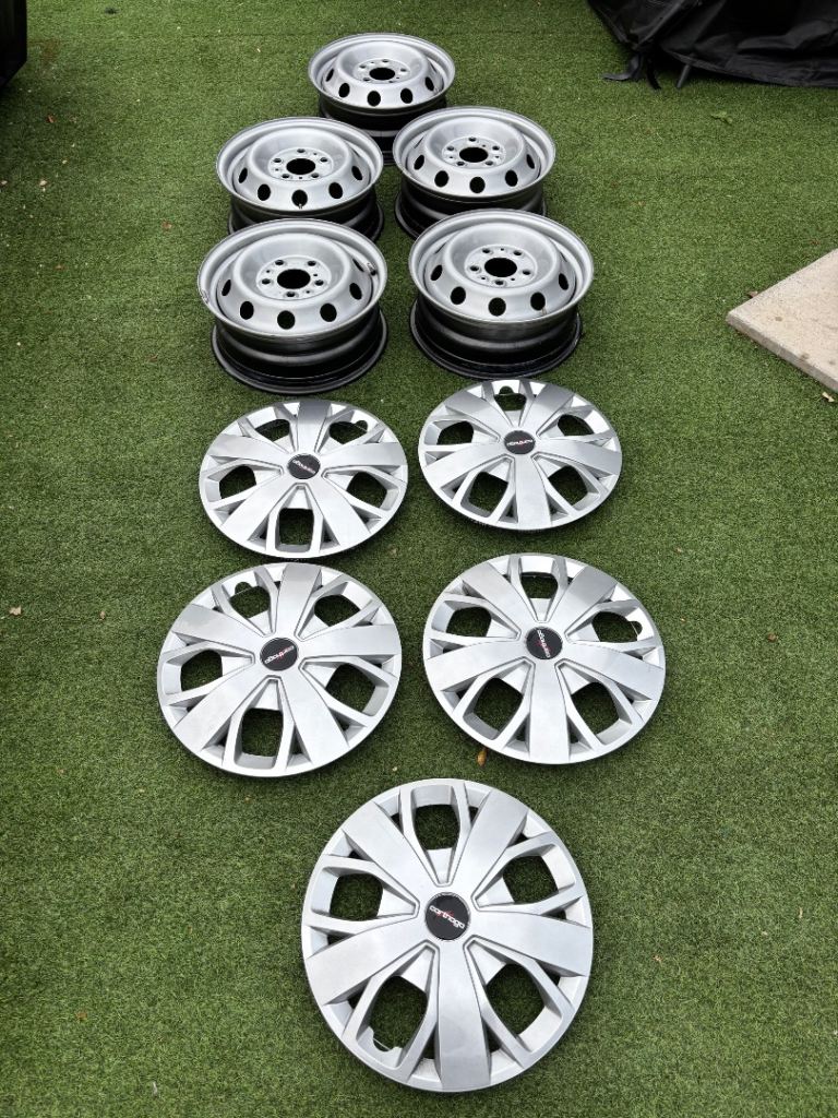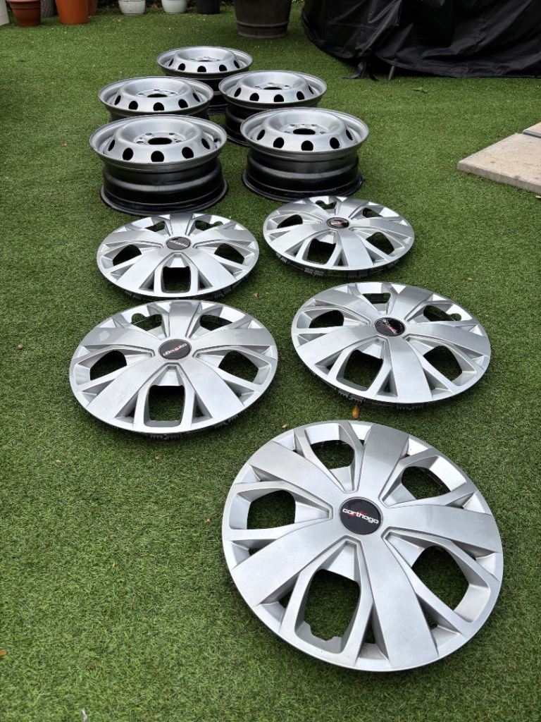 These wheels have only done 200 miles as replaced for alloys wheels. Totally in perfect condition with new wheel trims.