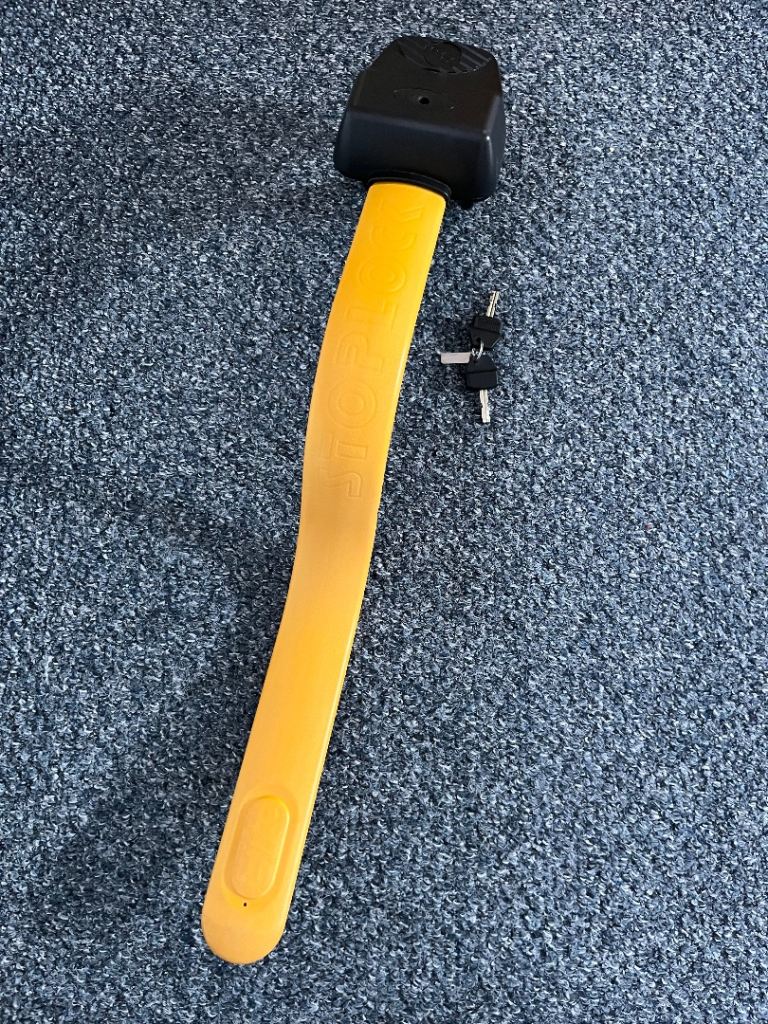 Pro Elite steering wheel lock, complete with 2 keys and key code. Good condition