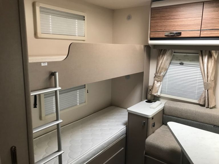 We are selling our 6 berth luxurious family caravan special anniversary edition, in excellent condition that offers a stylish design top of the range selection of features and a fixed bunk bed with divider for the rear bedroom.
