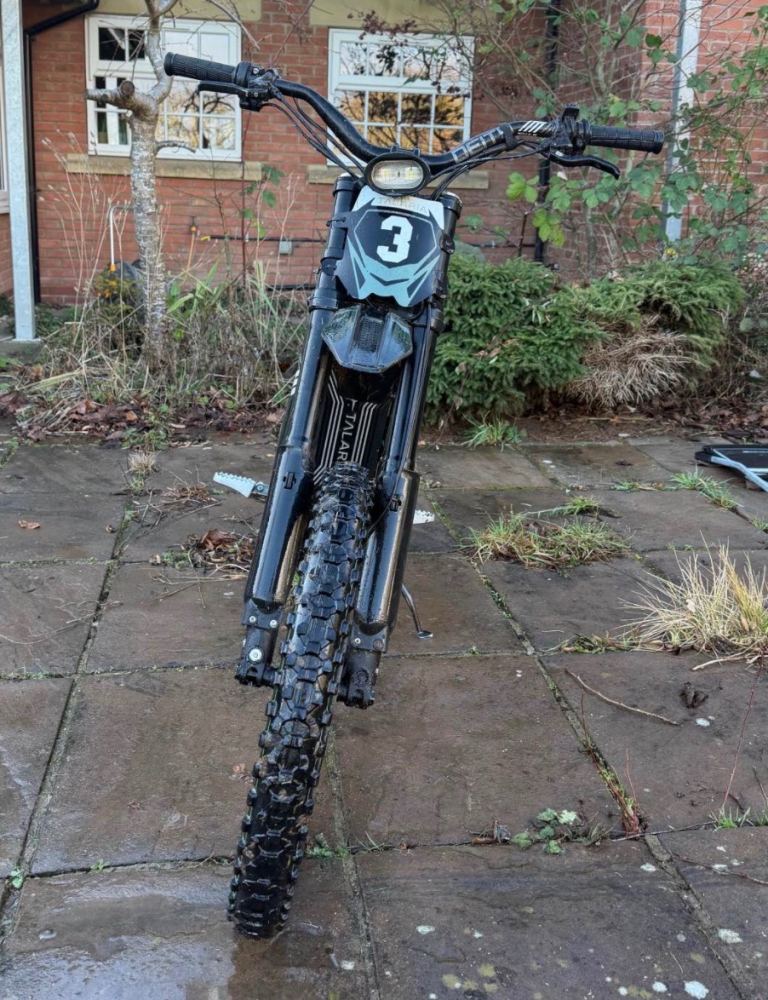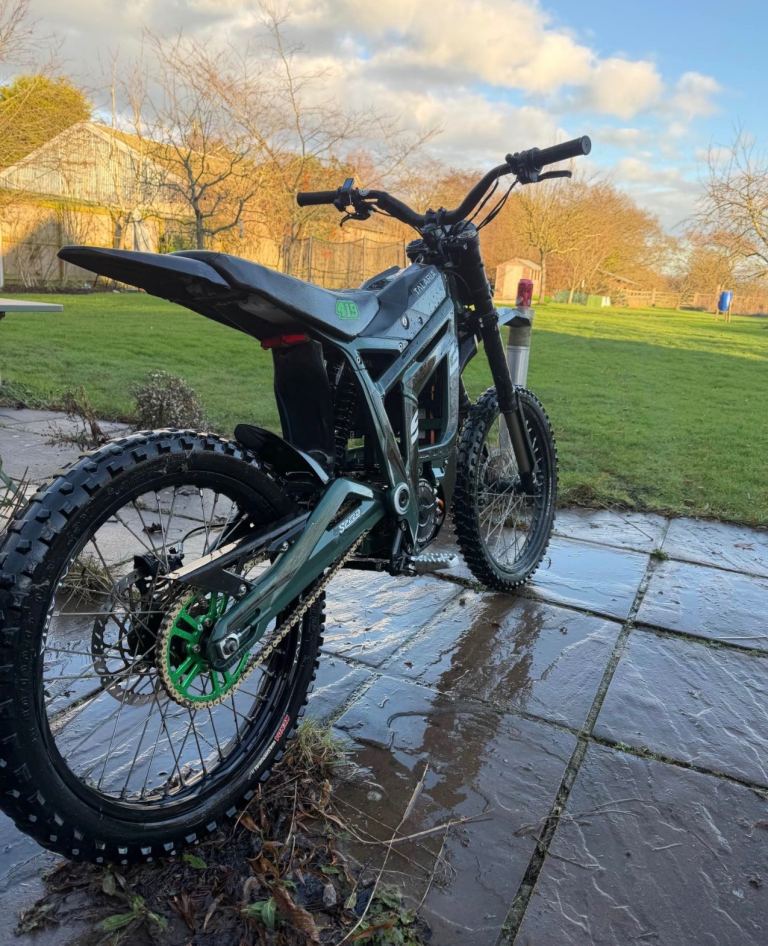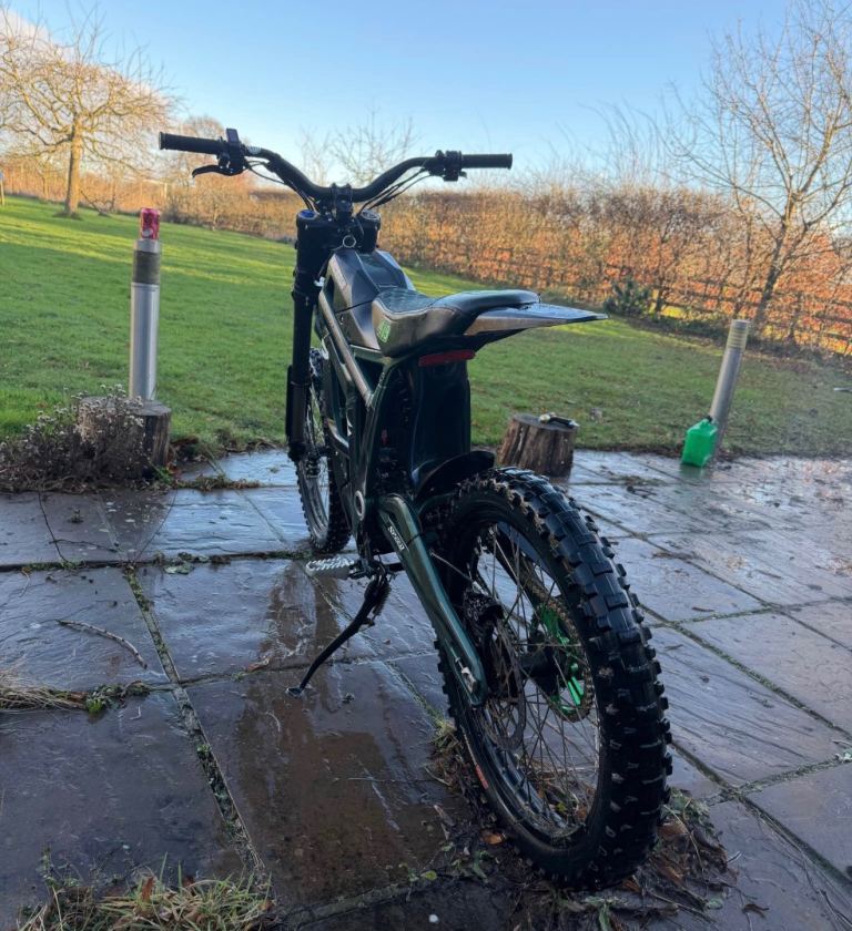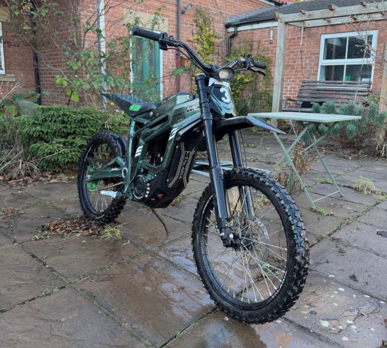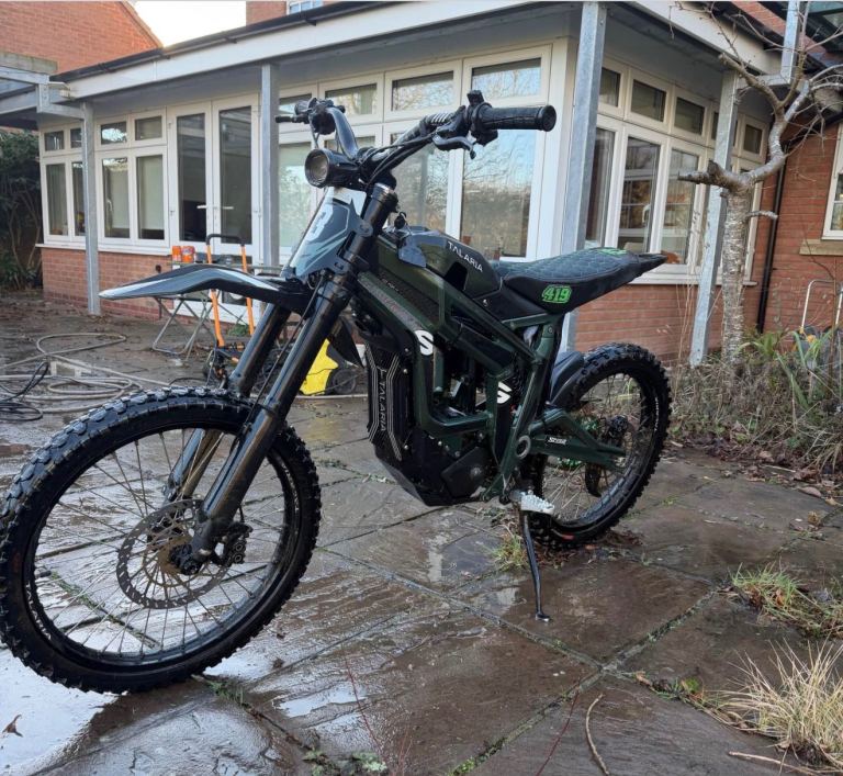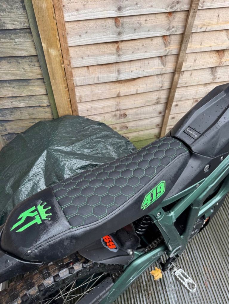 Clean and well-maintained 2024 Talaria Sting R Green frame Edition with green graphics kit and some nice upgrades. The bike has 1,900 genuine miles and no known faults, it has recently had a lot of maintenance work completed with some upgrades and replacement parts as part of its regular maintenance. The custom fabric seat is a very nice feature.