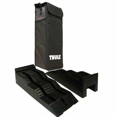 Great pair of Thule wheel chocks in carrier. Perfect compact option for levelling off your car, camper or caravan.