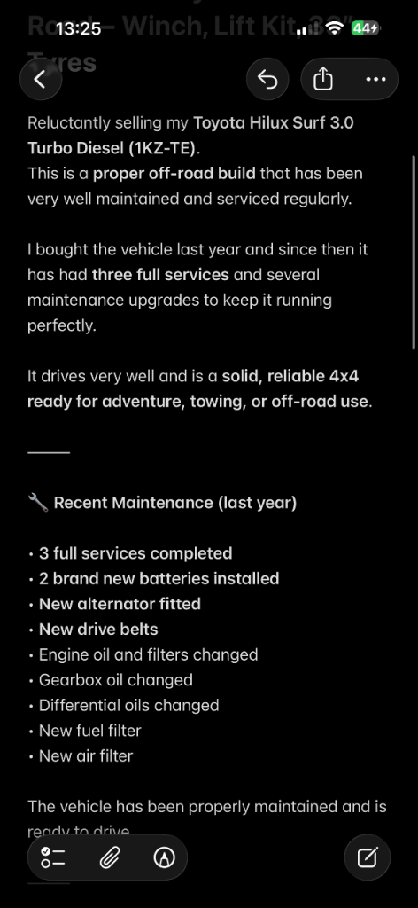 Reluctantly selling my Toyota Hilux Surf 3.0 Turbo Diesel (1KZ-TE).