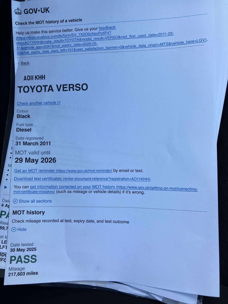 Toyota, VERSO, MPV, 2011, Manual, 1998 (cc), 5 doors