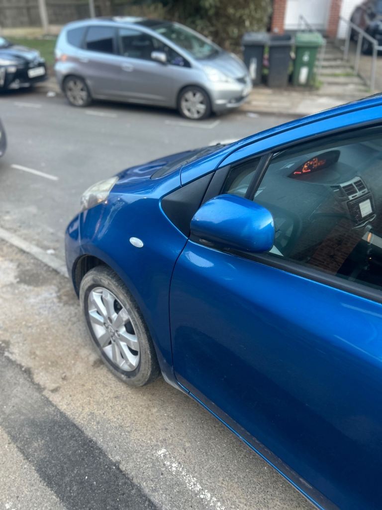 Side door damage and small damage on right side mirror, it’s an old car so minor dents and scratches on it, drive very nice .