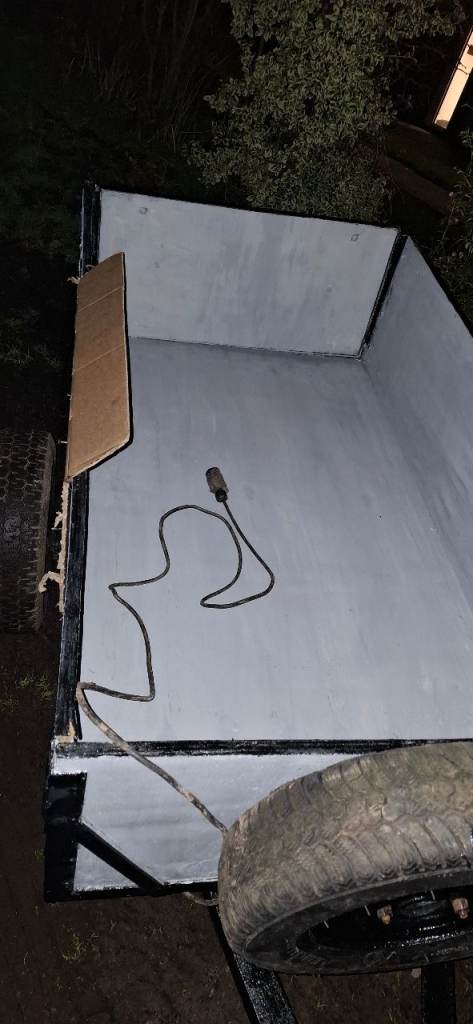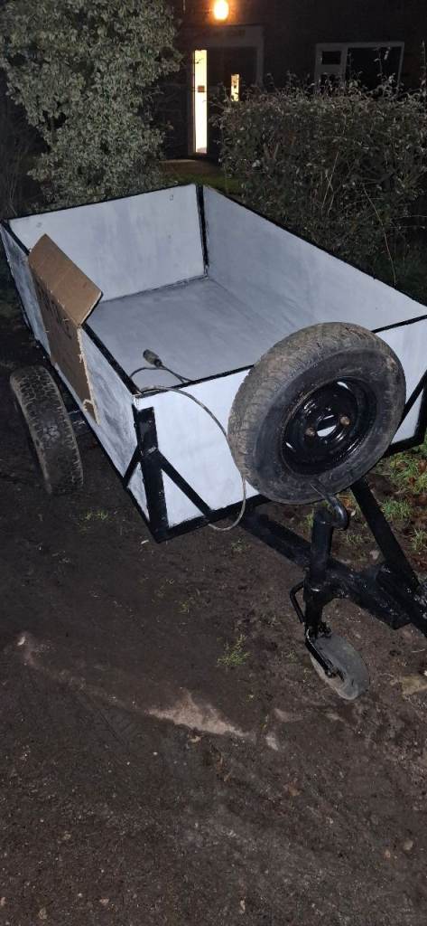 5ftx3ft 18mm ply treated, frames also anti corrosion treated , ixed but removerble tail board with lights very good condition includes spare wheel. Very well made ideal carboot size