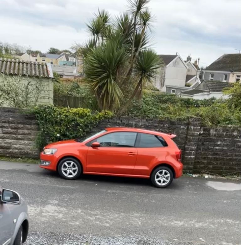 Burnt orange VW Polo, 74,172 miles. Petrol. 3 door hatchback with spoiler.