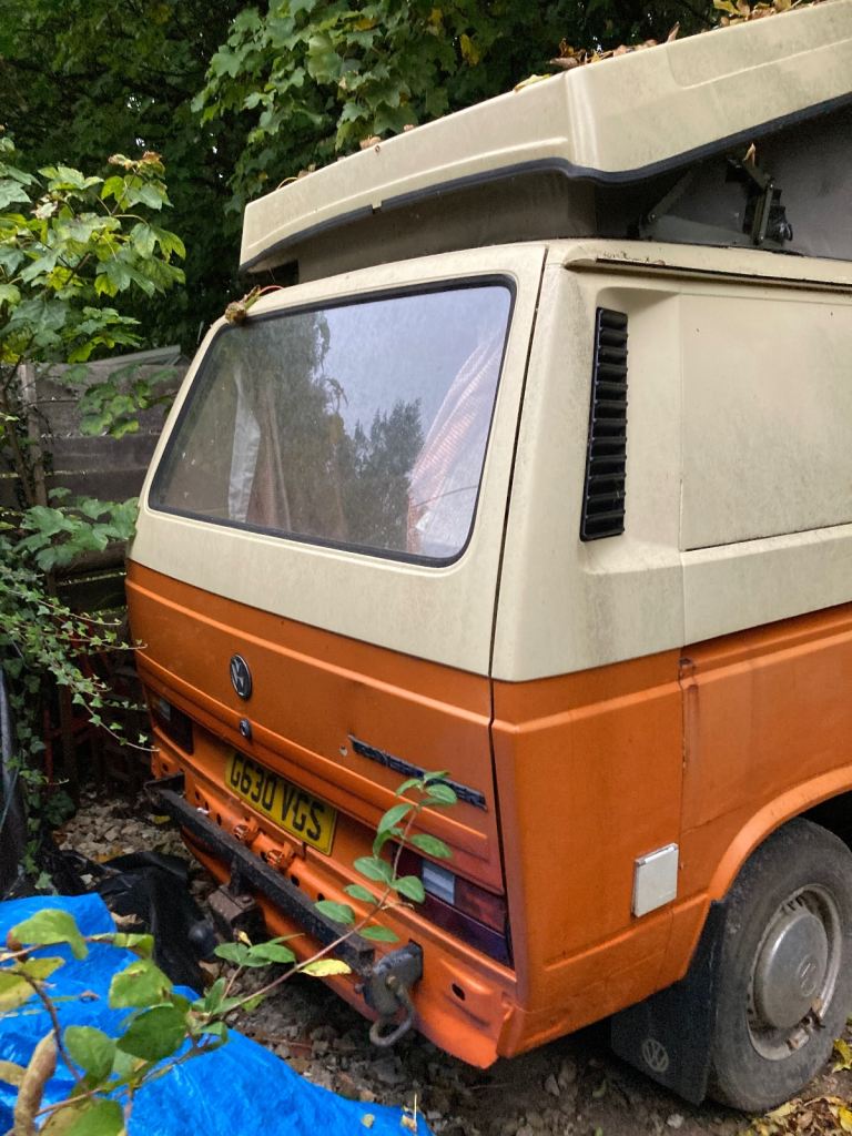 For spares or repair, 1989 2.1 petrol injection with corresponding 5 speed, Reimo conversion. Lovely engine and gearbox, interior a bit tired, front seats need re-upholstering. We`ve made a couple of round trips through europe with this and it hasn`t missed a beat. I`d go away in it tomorrow without hesitation if it weren`t for the rot in the rear chassis. Both trailing arms are very good, I had a couple shot blasted and powder coated for the mot a few years ago. Basically it`s a complete useable, running camper apart from the welding needed, which I am unable to carry out. It does need some serious welding, not just a patch. As can be seen in the photos (to follow), the inner trailing arm mount on the nearside has torn away from the chassis leg. It will probably need other patches and generally I think it`s fair to say the bodywork is starting to look a little tired and does need some attention. It`s priced according to the value of the engine, gearbox and trailing arms.