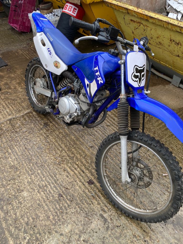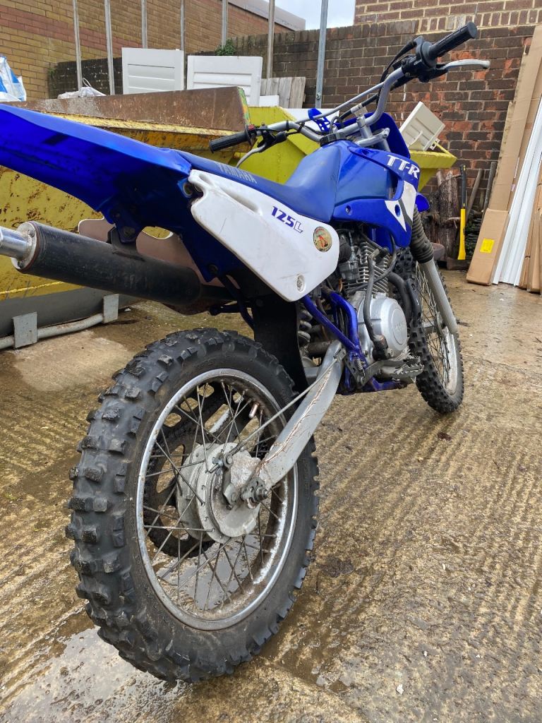 2001 blue Yamaha - sought after TTR 125L model big wheel model, 123cc 5 speed manual 4 stroke offroad dirt scrambler bike. In excellent condition and lightly used. Not raced or jumped. Engine Number E309E-042818, VIN/Chasis No: JYACE07Y92A038720. The bike is running sweet, has recently had oil change, service and carburettor flushed. Seat to floor is approximately 33 inches, front wheel is approximately 21/22 inches and the rear wheel is approximately 16/17 inches. Very quick, sounds superb and brilliantly fun to ride. Perfect for racers and/or kids.