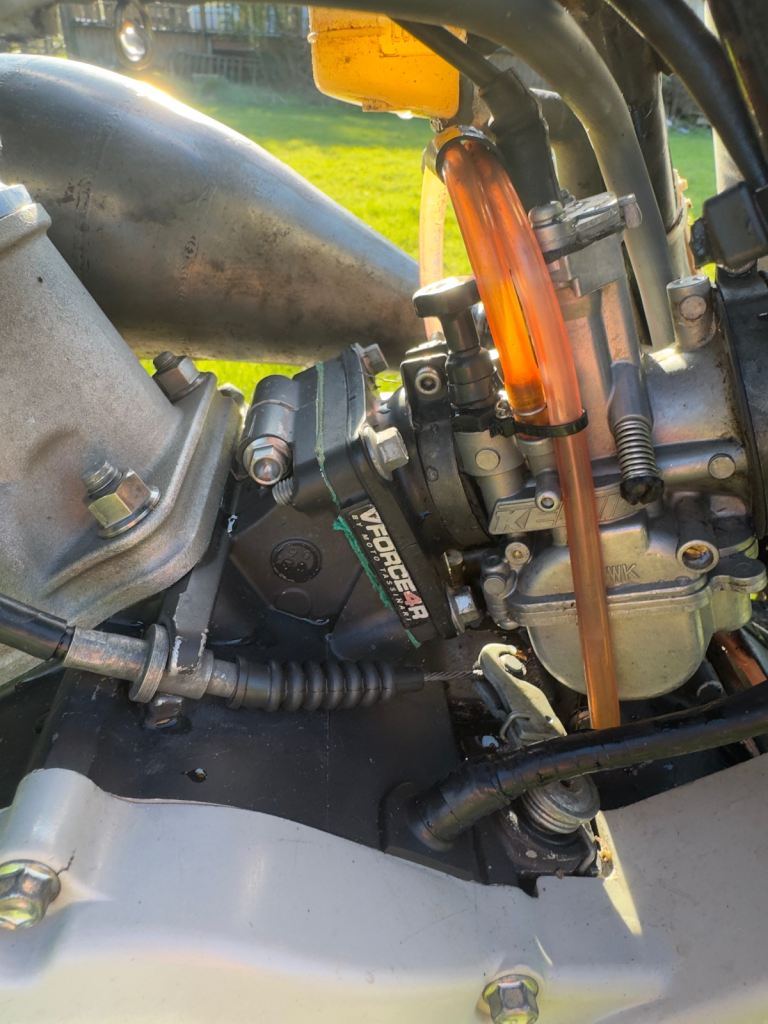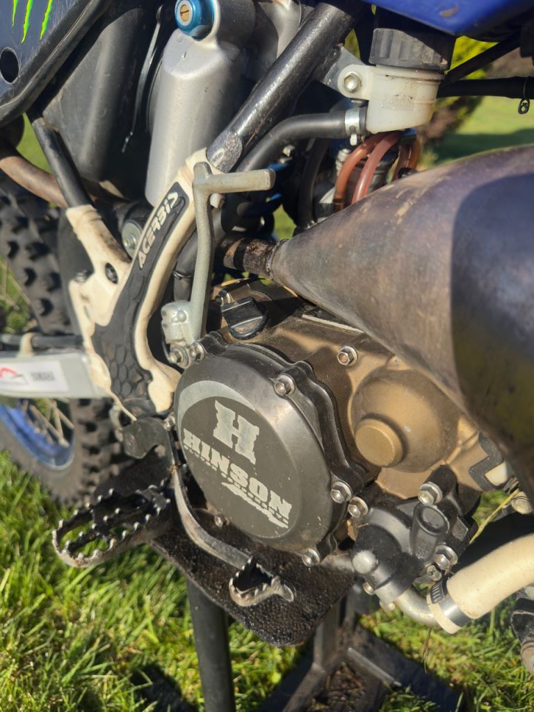 Hinson clutch & cover, VForce 4R reeds, Moto 33 suspension, K-Tech spring, X-Trig clamps, full PPS exhaust, VHM head, Yamaha gripper seat