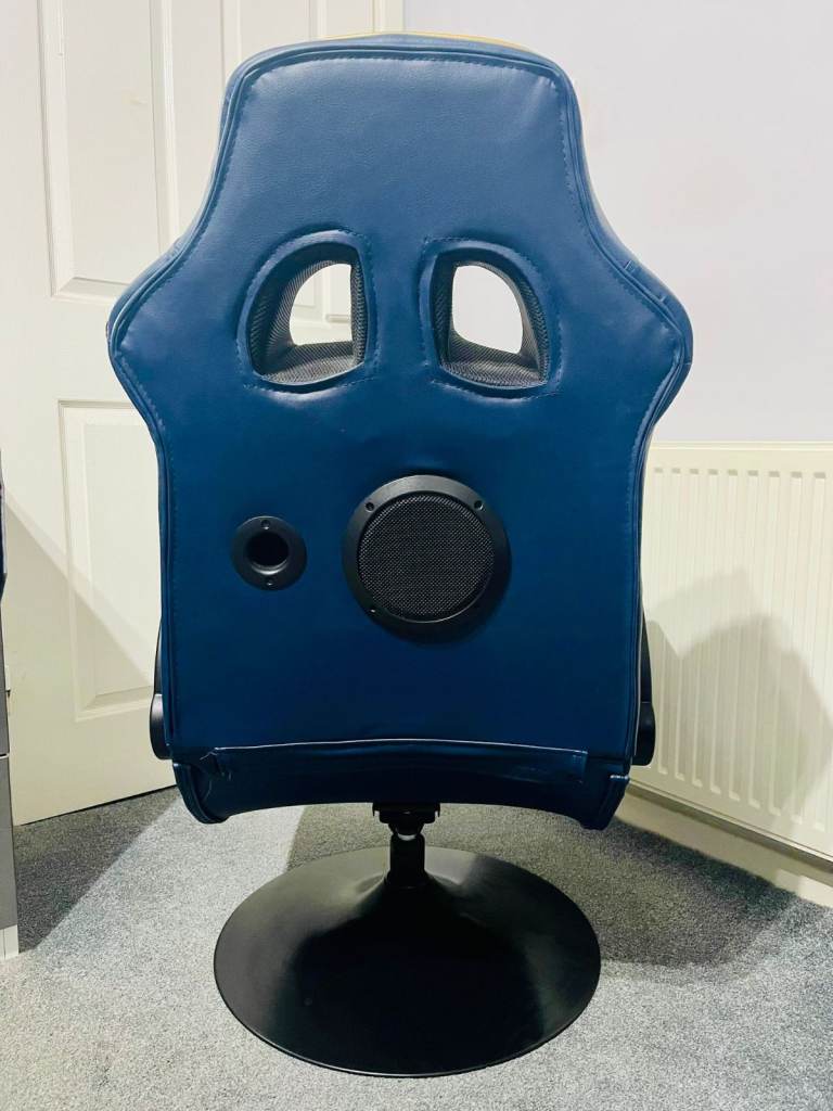 Featuring built-in headrest speakers, a backrest-mounted subwoofer, and sound-reactive vibration motors. It allows for wireless audio from Bluetooth-enabled devices and includes wired connection options for consoles like Playstation, Xbox and Switch.