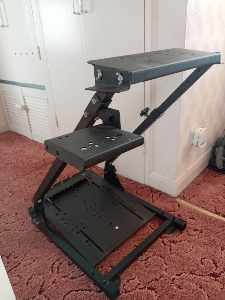 Foldable gaming sim stand for any gaming wheel pedals and shifter.