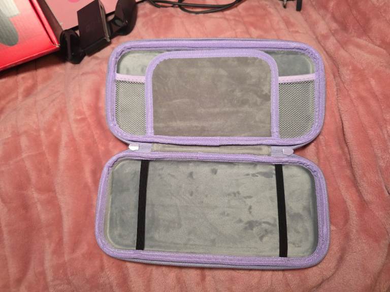 Sanrio Kuromi carry case also included, soft interior + space for 5 games and some accessories