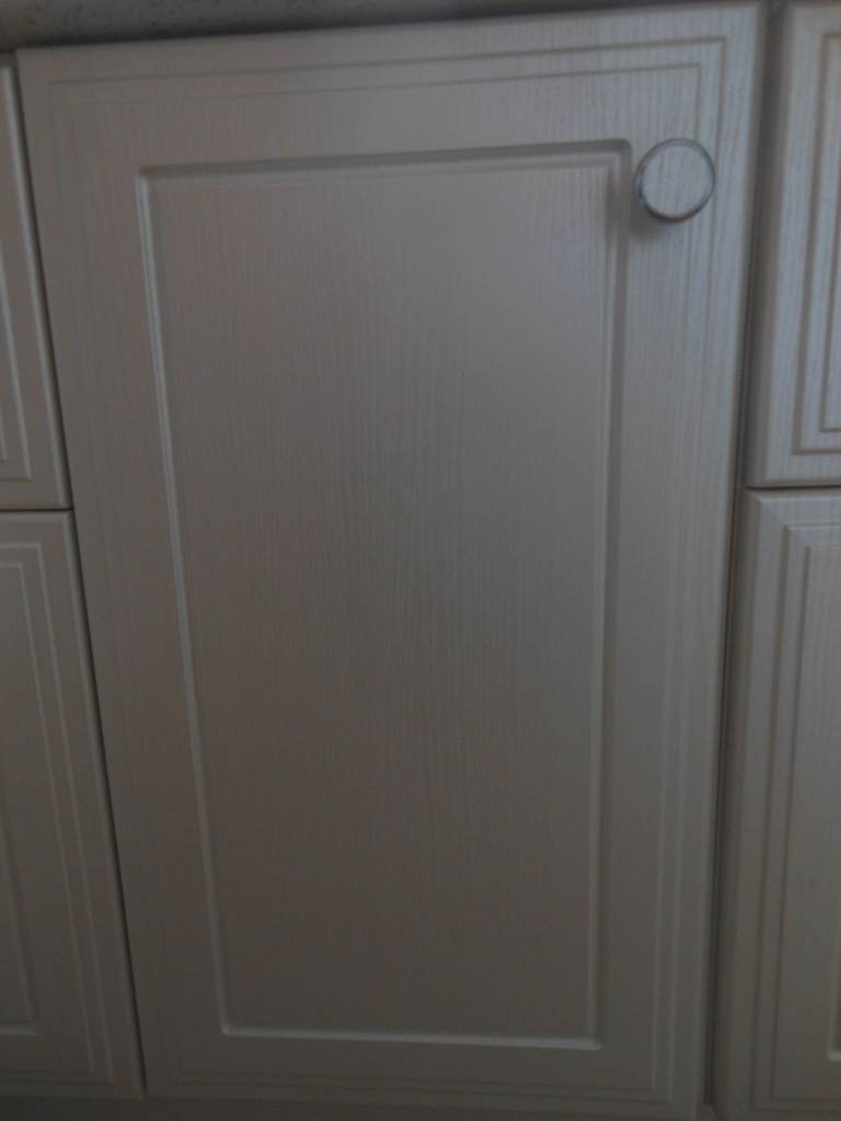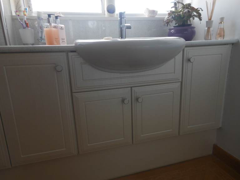 4no.cabinet doors -- 2no. 315mm wide x 555mm high and 2no. 315mm wide x 355mm high -- all with hinges and knobs -- basin panel 630mm wide x 200mm high -- cut out suitable for a shanks semi recessed basin -- all in excellent condition