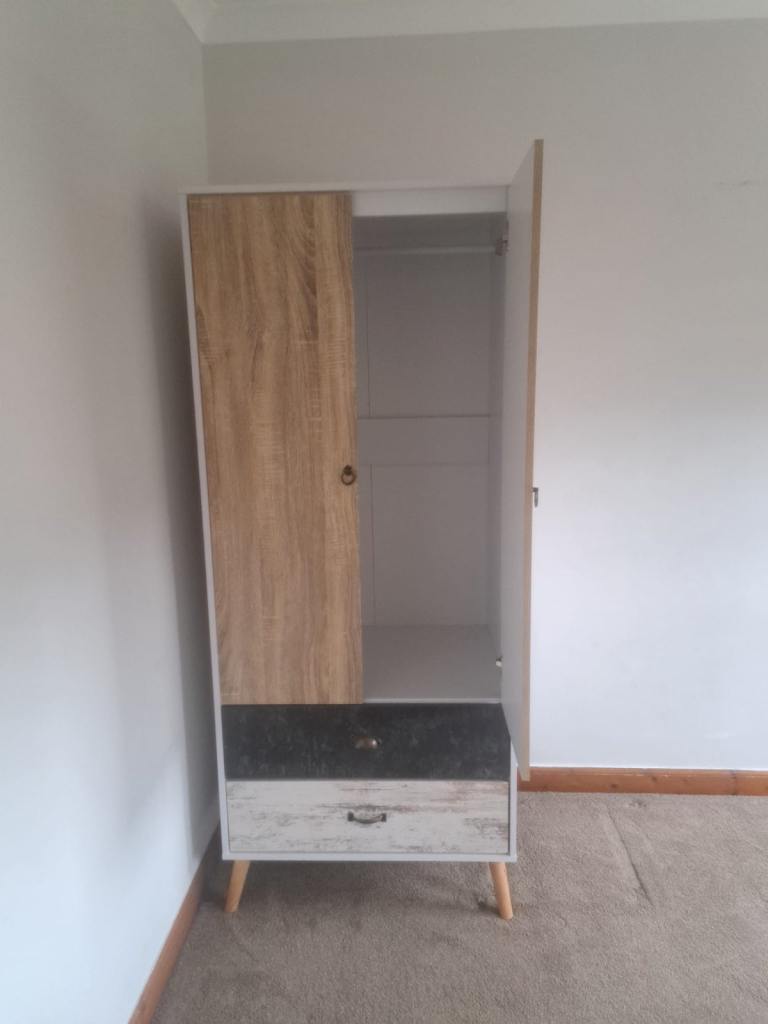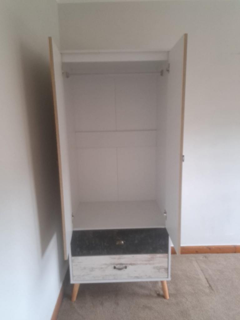 Modern multi colour wardrobe with 2 x storage drawers. Very rarely been used so in great condition. Funky piece of furniture to brighten up a bedroom.