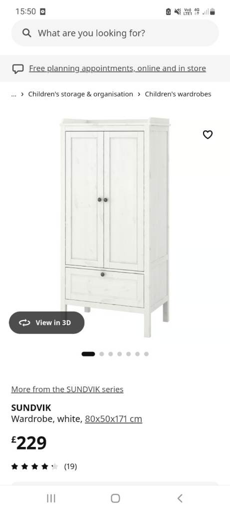 Childrens Kids Wardrobe | IKEA Sundvik RRP £229 | White wardrobe