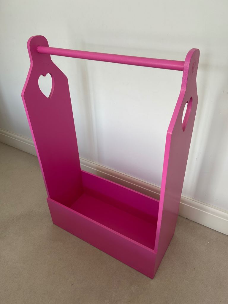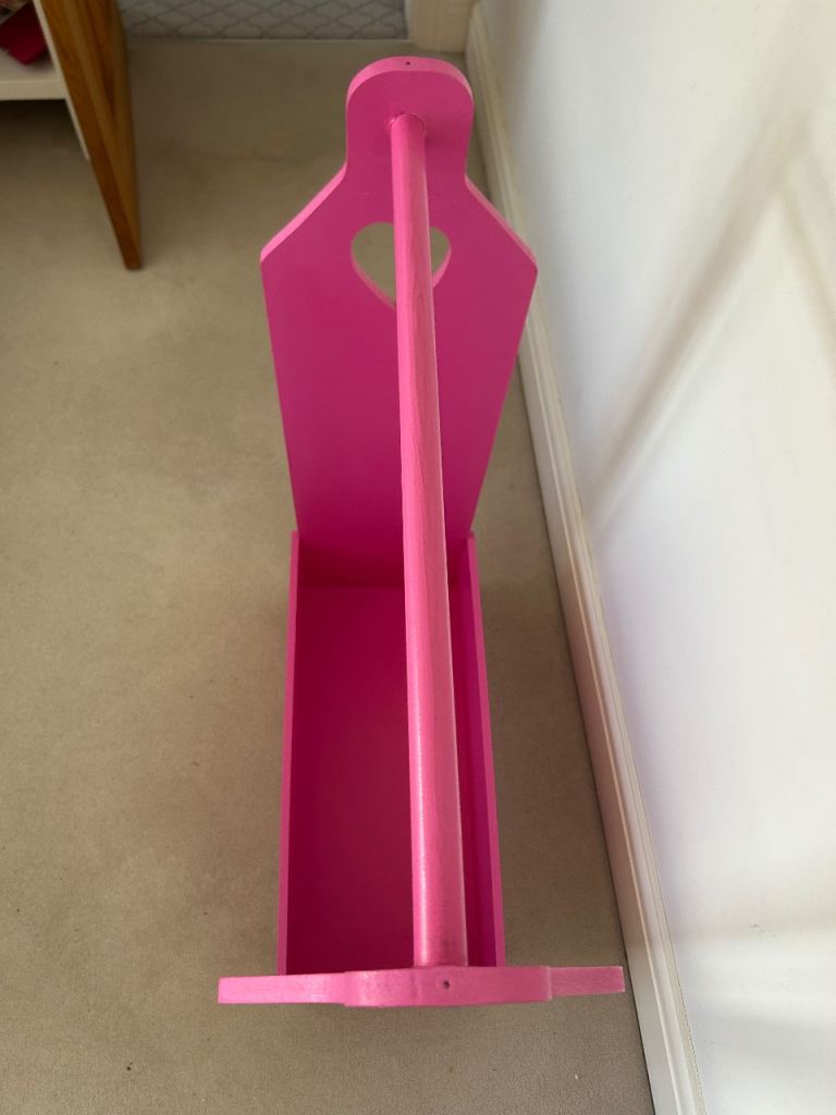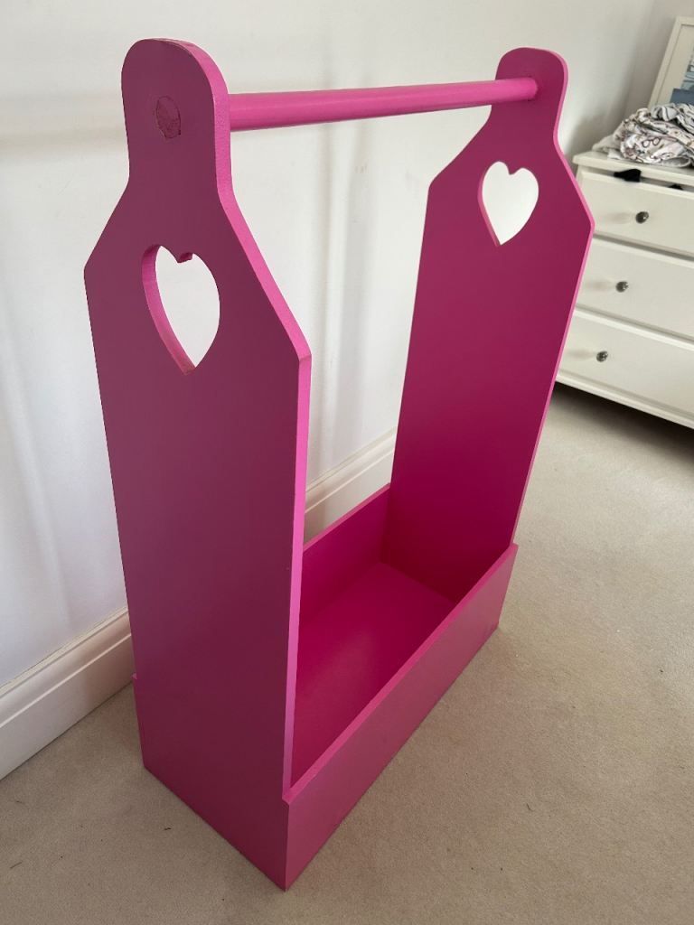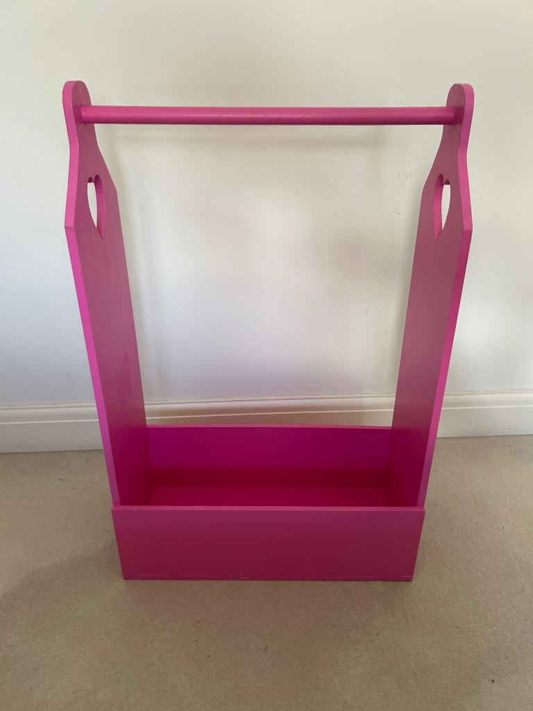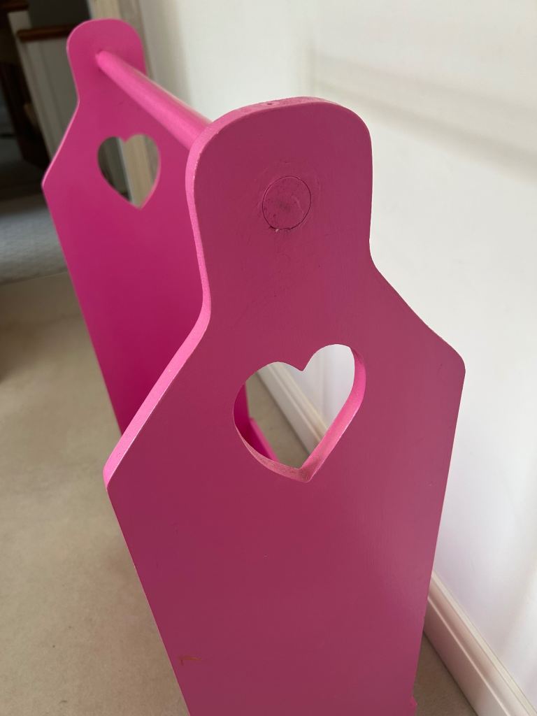Posting for 11+ monthsClothes/dressing up rail - freestanding, solid wood, panted pink.