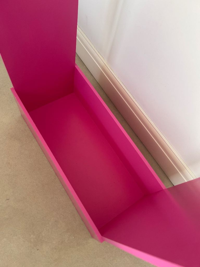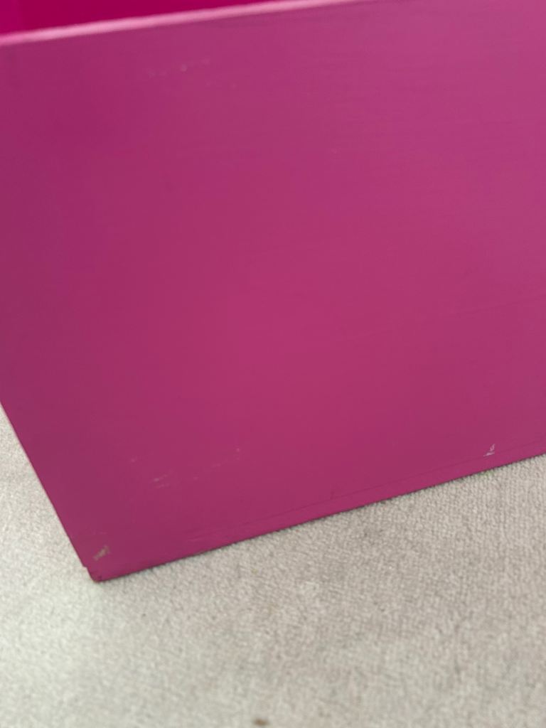 Painted pink, some scuffs and chips but could be rubbed down and repainted any colour.