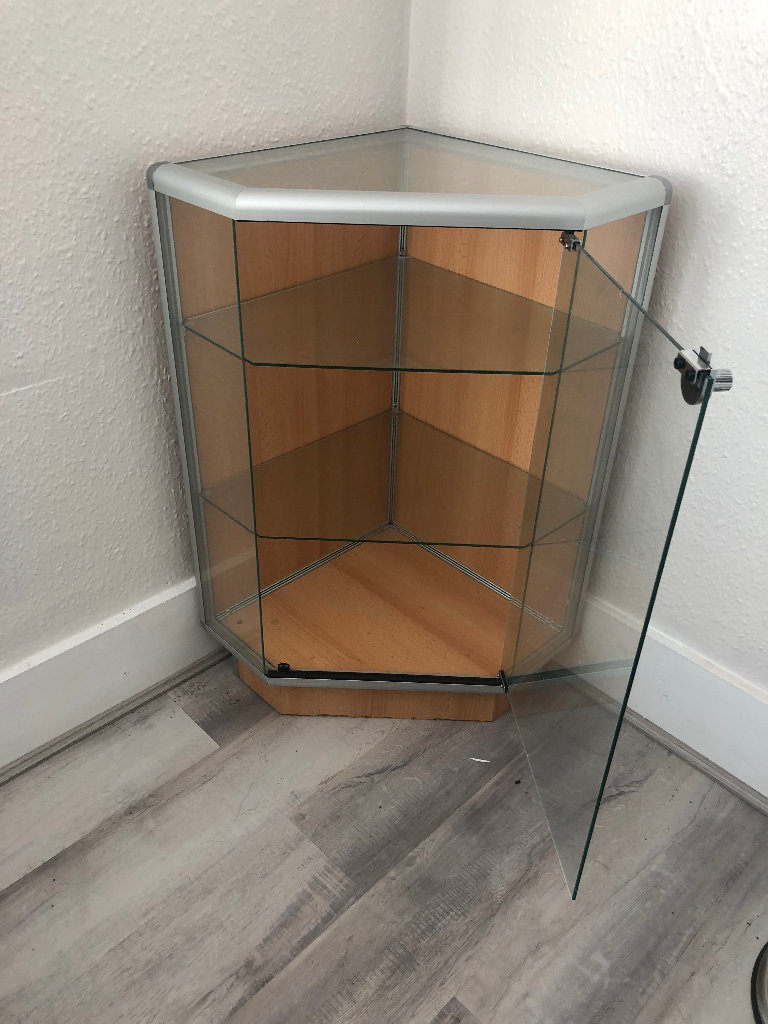 Corner glass cupboard, key missing but still able to open and close door. Collection only. Cash on collection. No returns