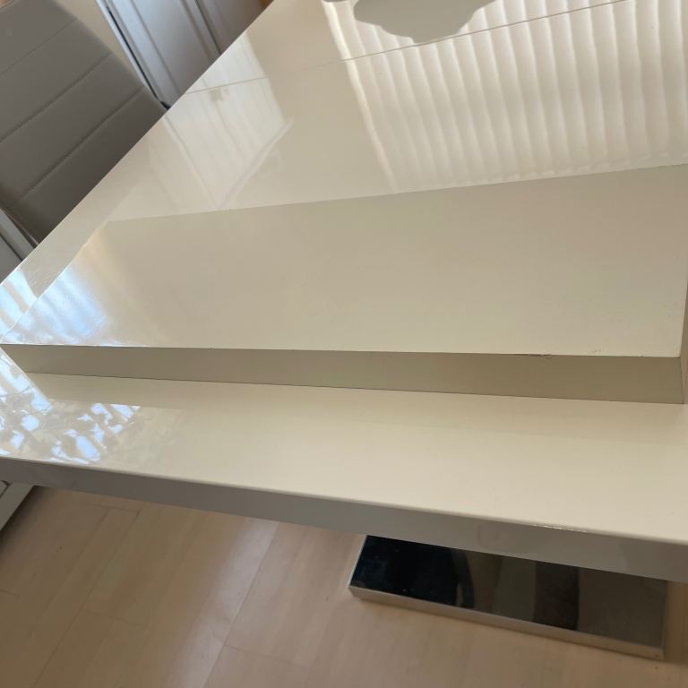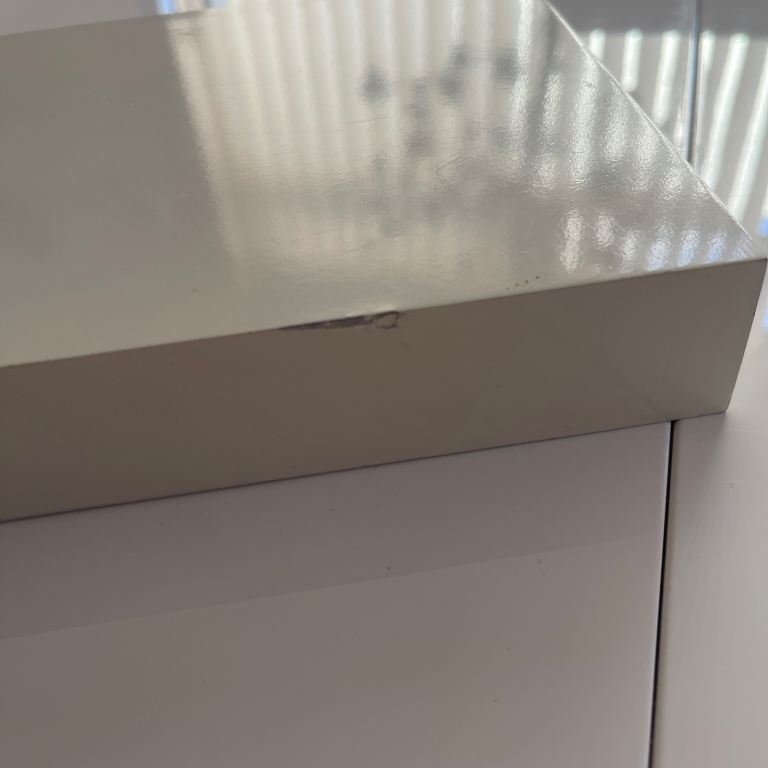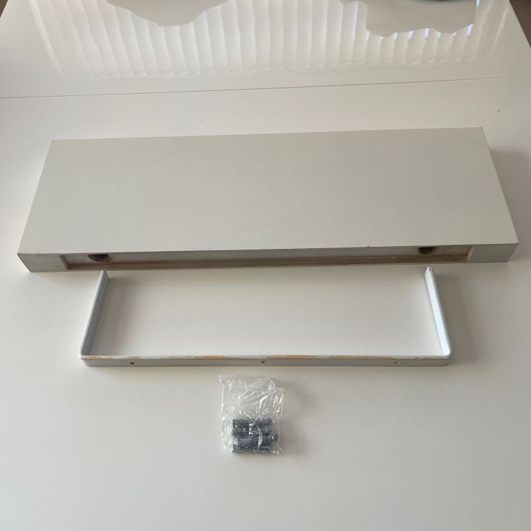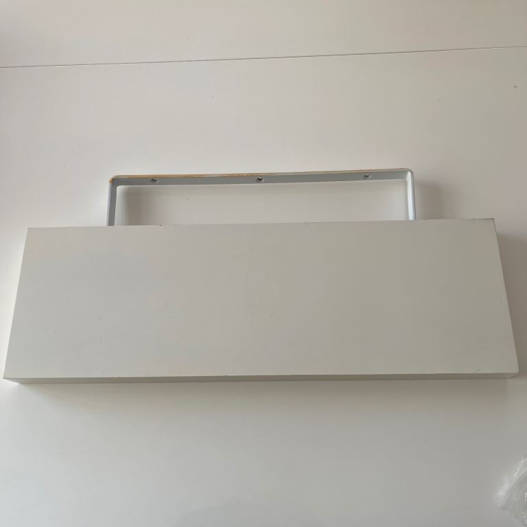 Decorative wall shelf with hidden support, simply fix the bracket to the wall and push the shelf onto the support bracket through the two holes on the back of the shelf, fixings are included. Good condition there is a small mark on an edge as seen in the last photo hence only £3