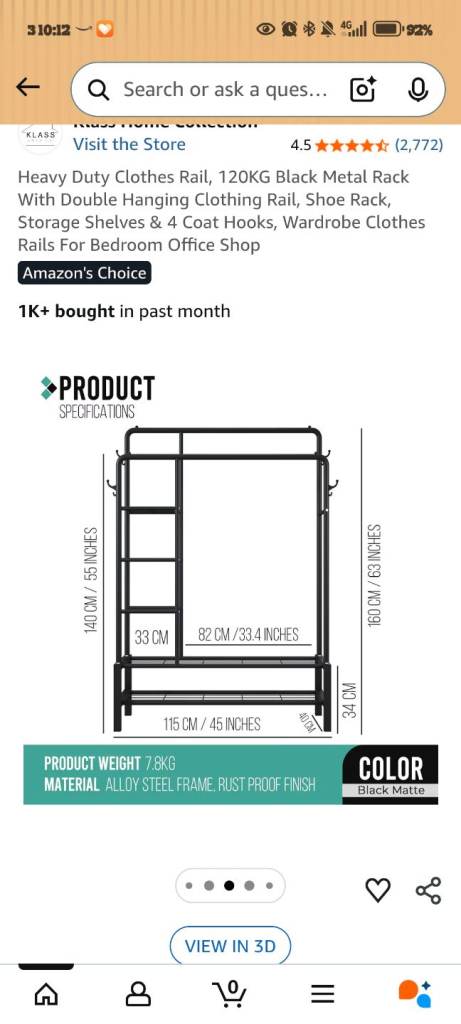 Double clothes rail from Amazon with shelves. Like new, very sturdy.