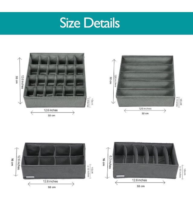 【4-SIZE ORGANIZER SET FOR DIFFERENT NEEDS】: You can storage bras in 5-cell organisers(32*32*10cm), underwear in 8-cell(32*16*10cm) and the 24-cell(32*32*10cm) is for socks and ties. The 6-cell organisers(32*16*10cm) can storage for scarves or pants.