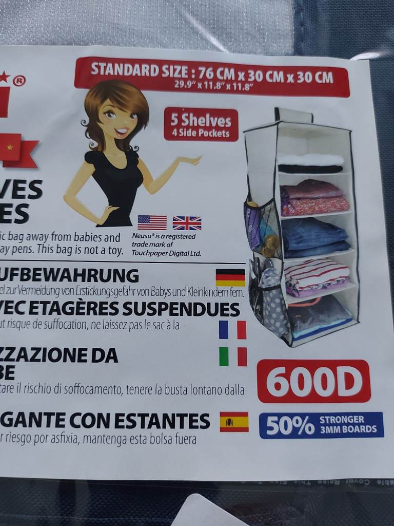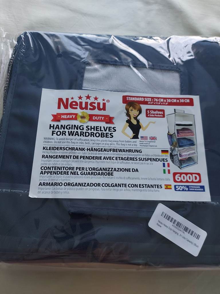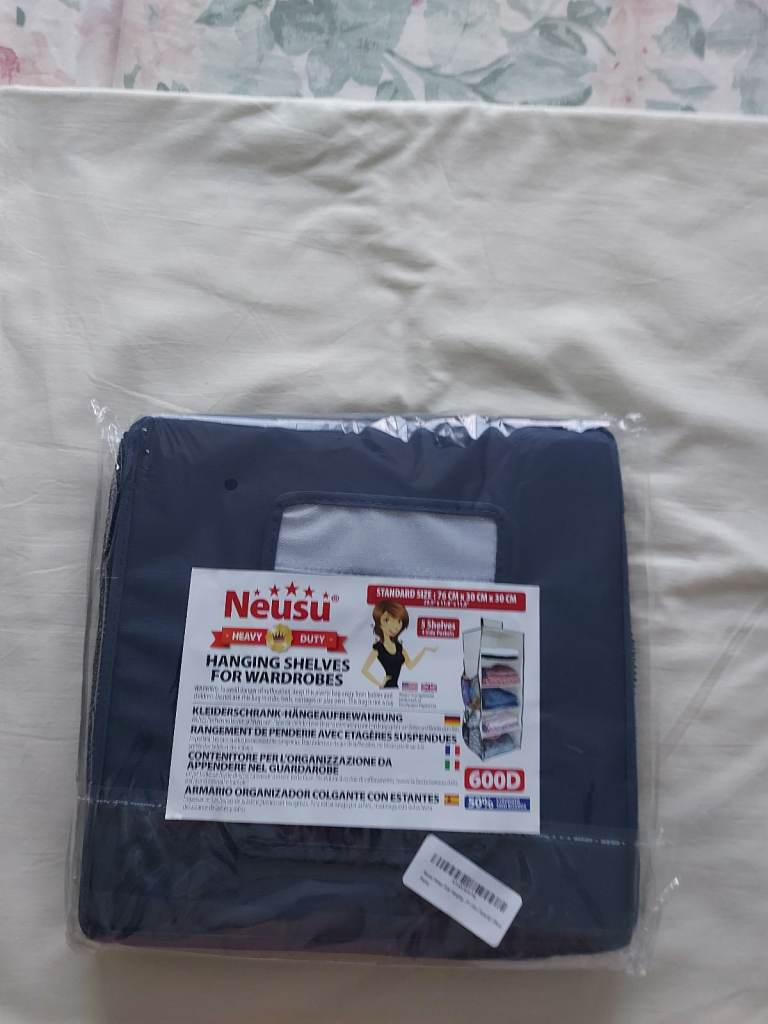 Brand new hanging Shelves For Wardrobes, never used. 5 Shelves and 4 side pockets. Cash and collection only.