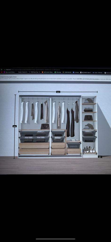 Great condition , note that one drawer is not included , easily replaced with Komplement system drawer sold in Ikea. (30£)