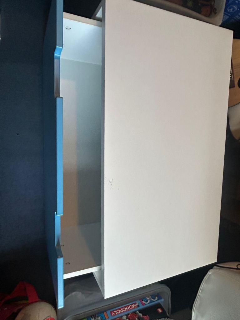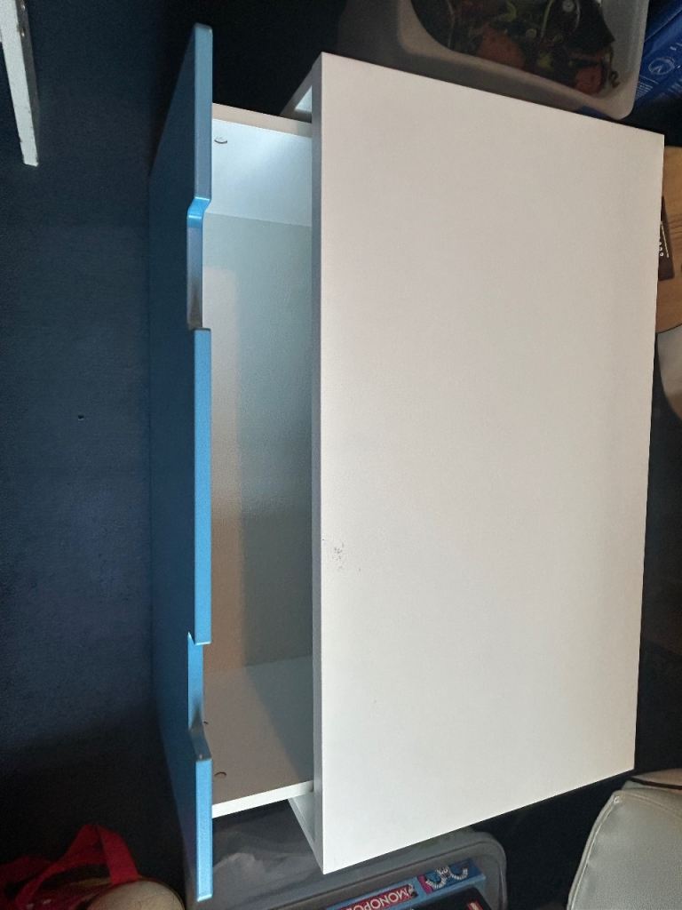 Kids Ikea Blue and White Storage Unit. Slight imperfections (see photos) top of white unit were marked could be painted over but has been looked after.