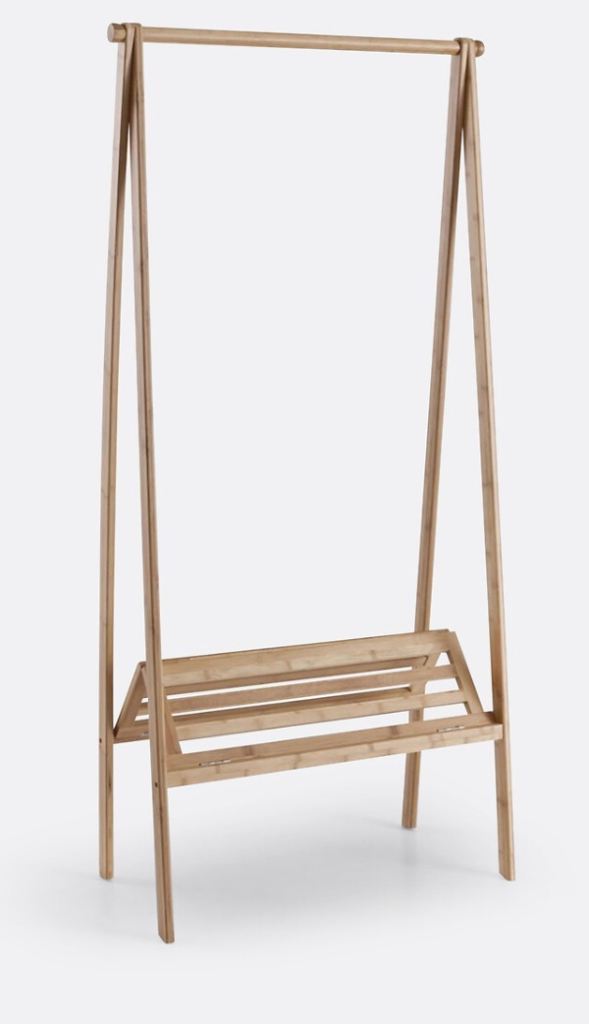 Bamboo Folding Clothes Rack with Shelf. In as new condition. Still selling for £140 online.