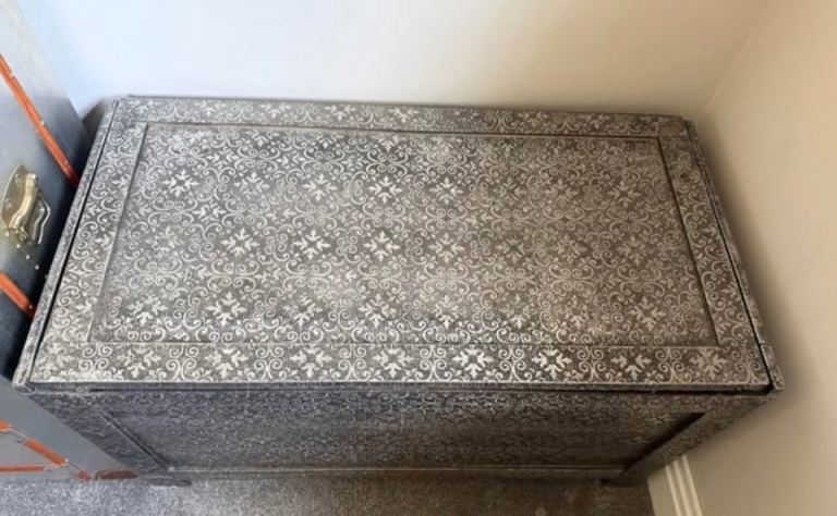 Posting for 10+ monthsMetal laminated wooden storage box/ottoman