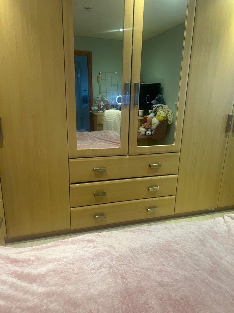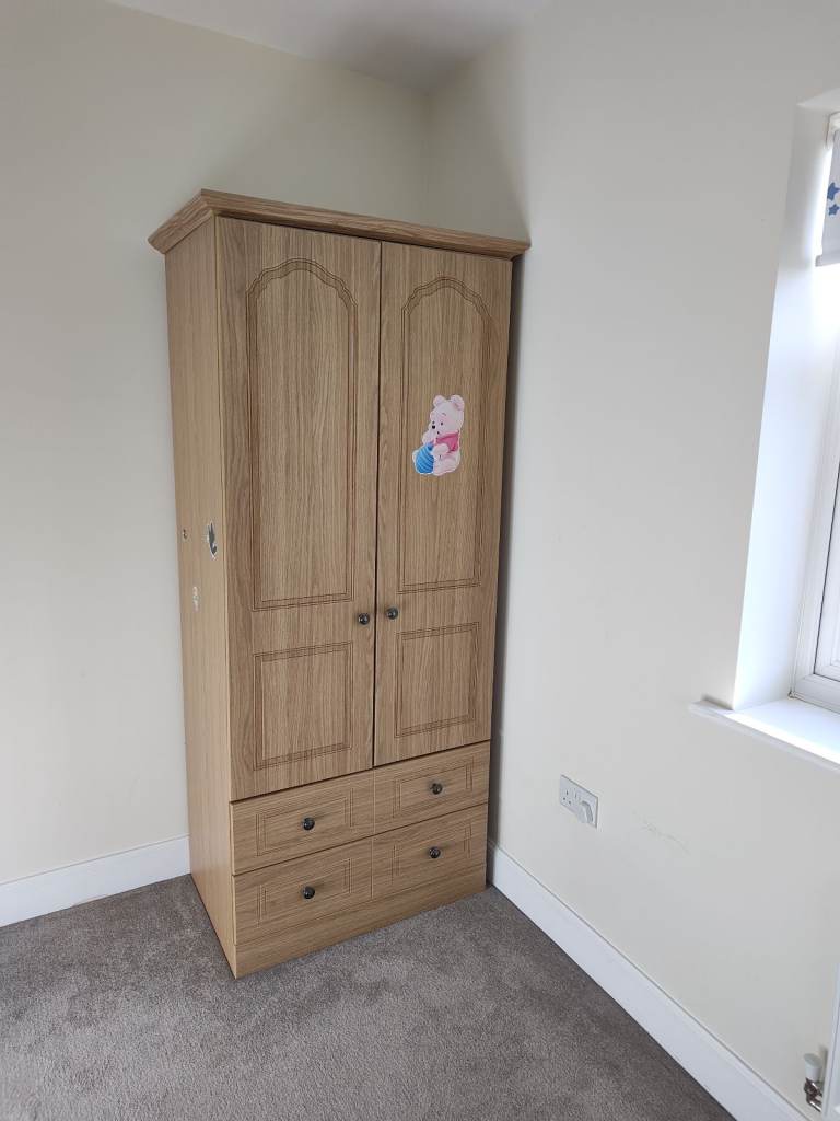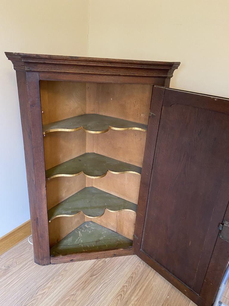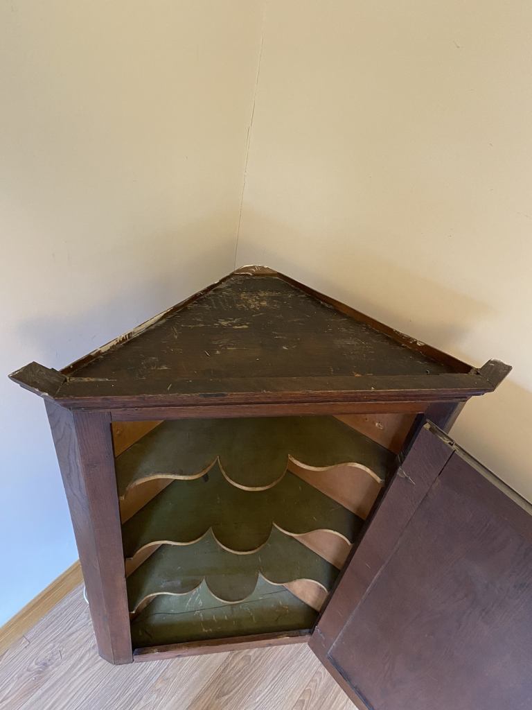Vintage wooden wall corner cabinet. 1200mm high, 780mm wide, 400mm deep approx.