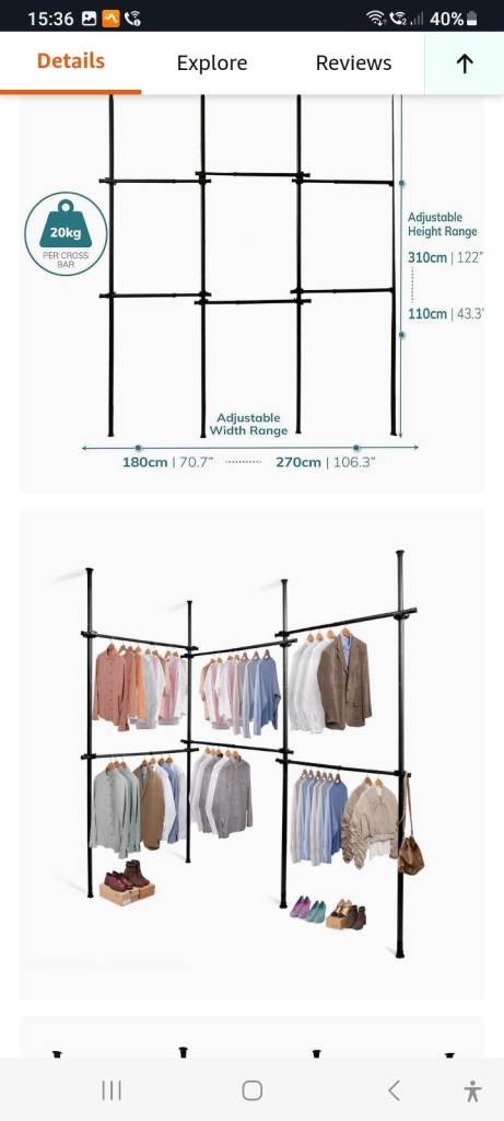Wardrobe insert/ freestanding alternative Unopened triple clothes rail