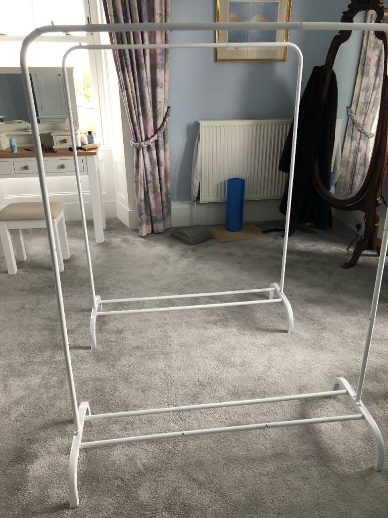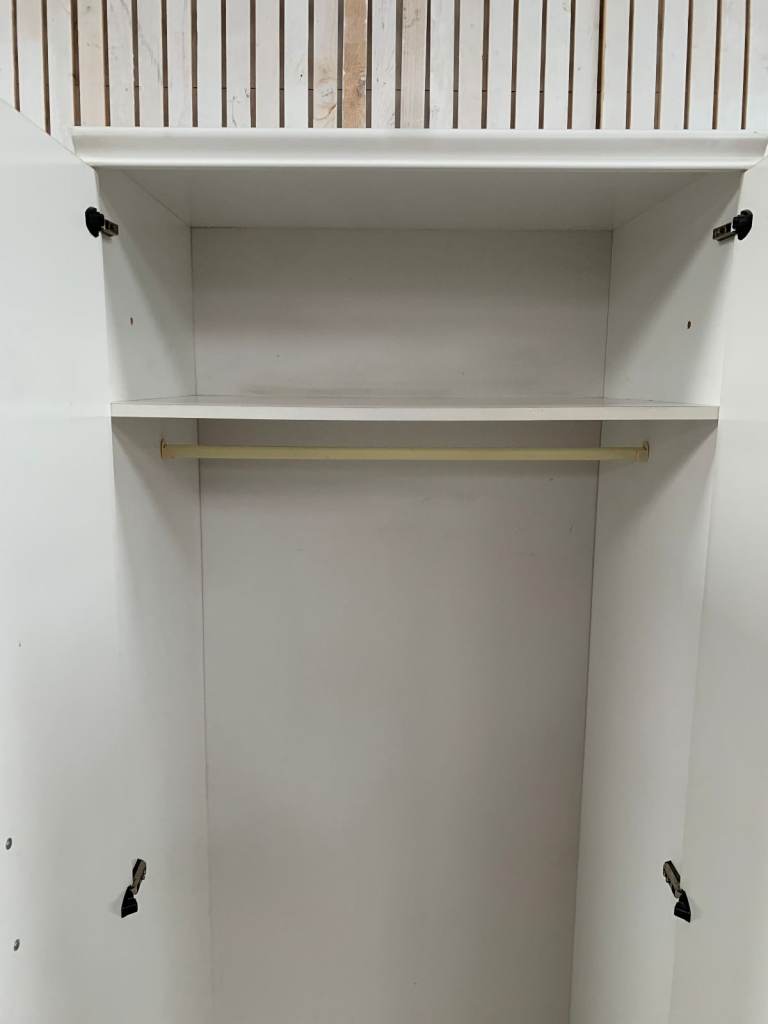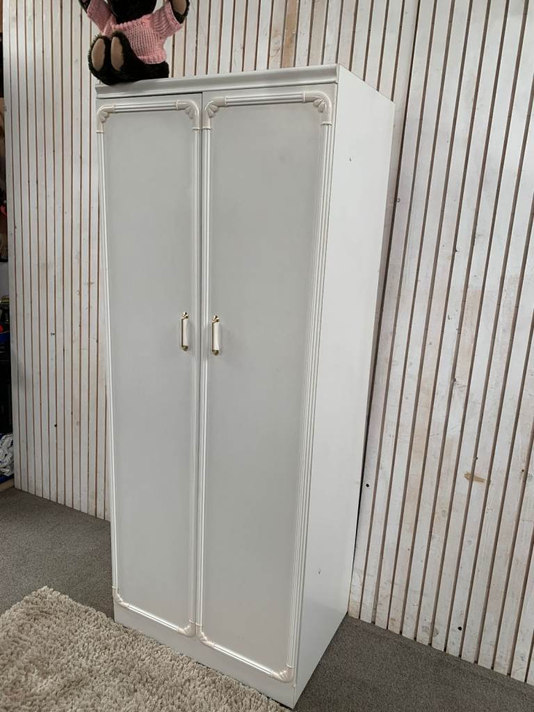 White Vintage Wardrobe with Full Hanging space and a shelf on top.