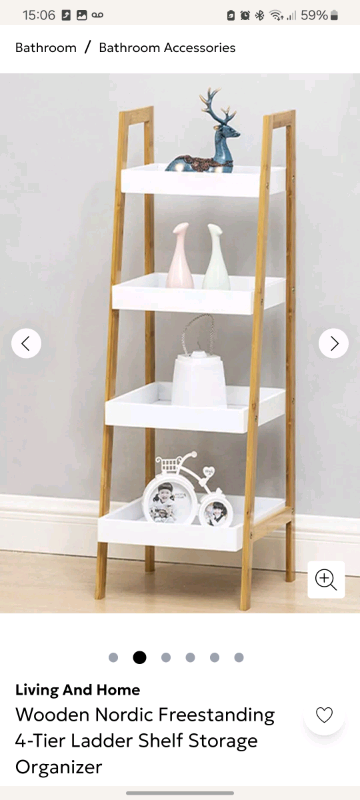 4 Tier Bathroom Ladder Shelf Wood Frame