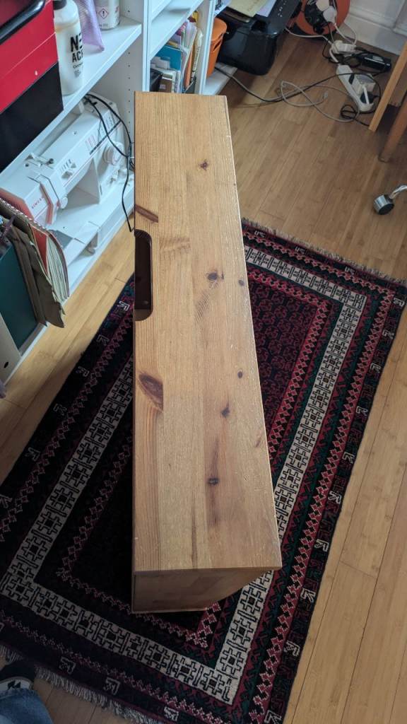 Good quality square pine under bed drawer, comes with casters.