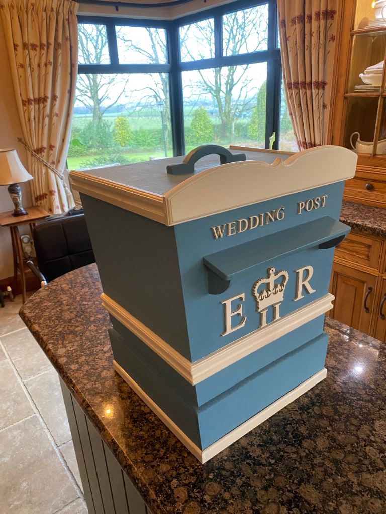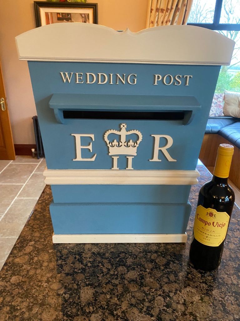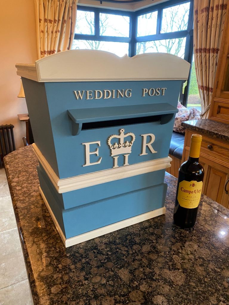 Delightful hand made and hand painted wedding post box for your cards and messages.