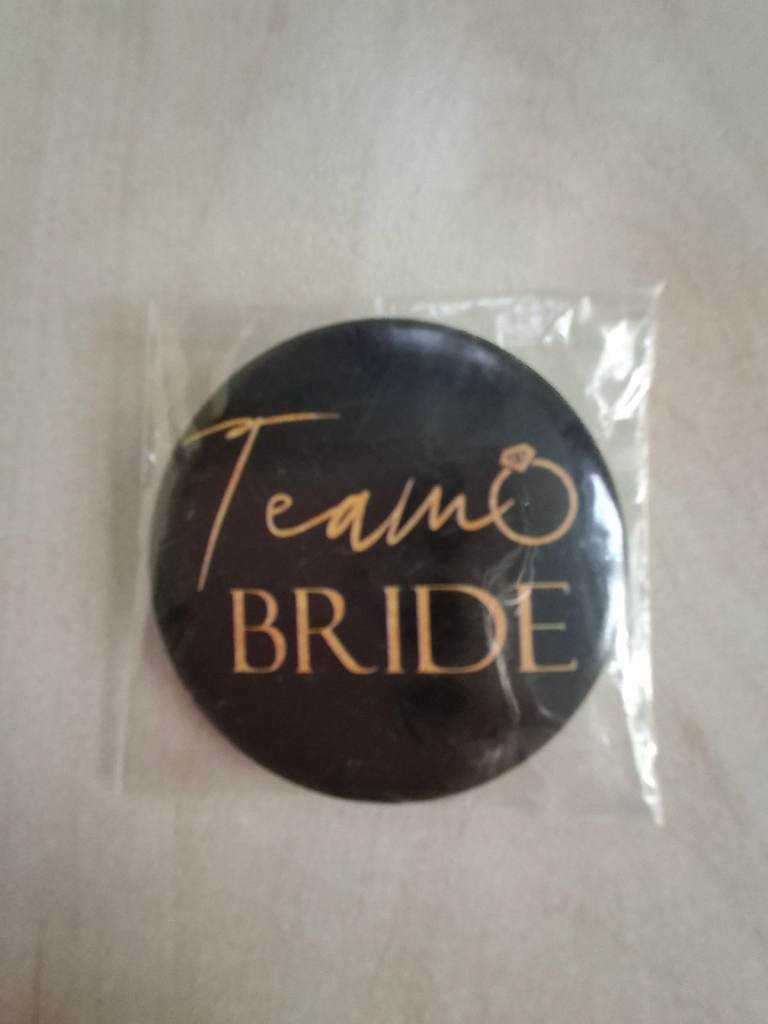 Black & Gold 'Team Bride' Pin Badge. From a smoke & pet free home.